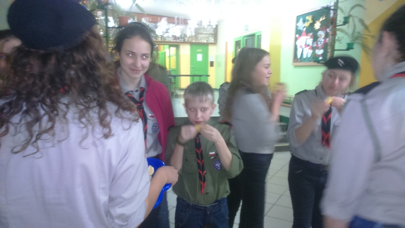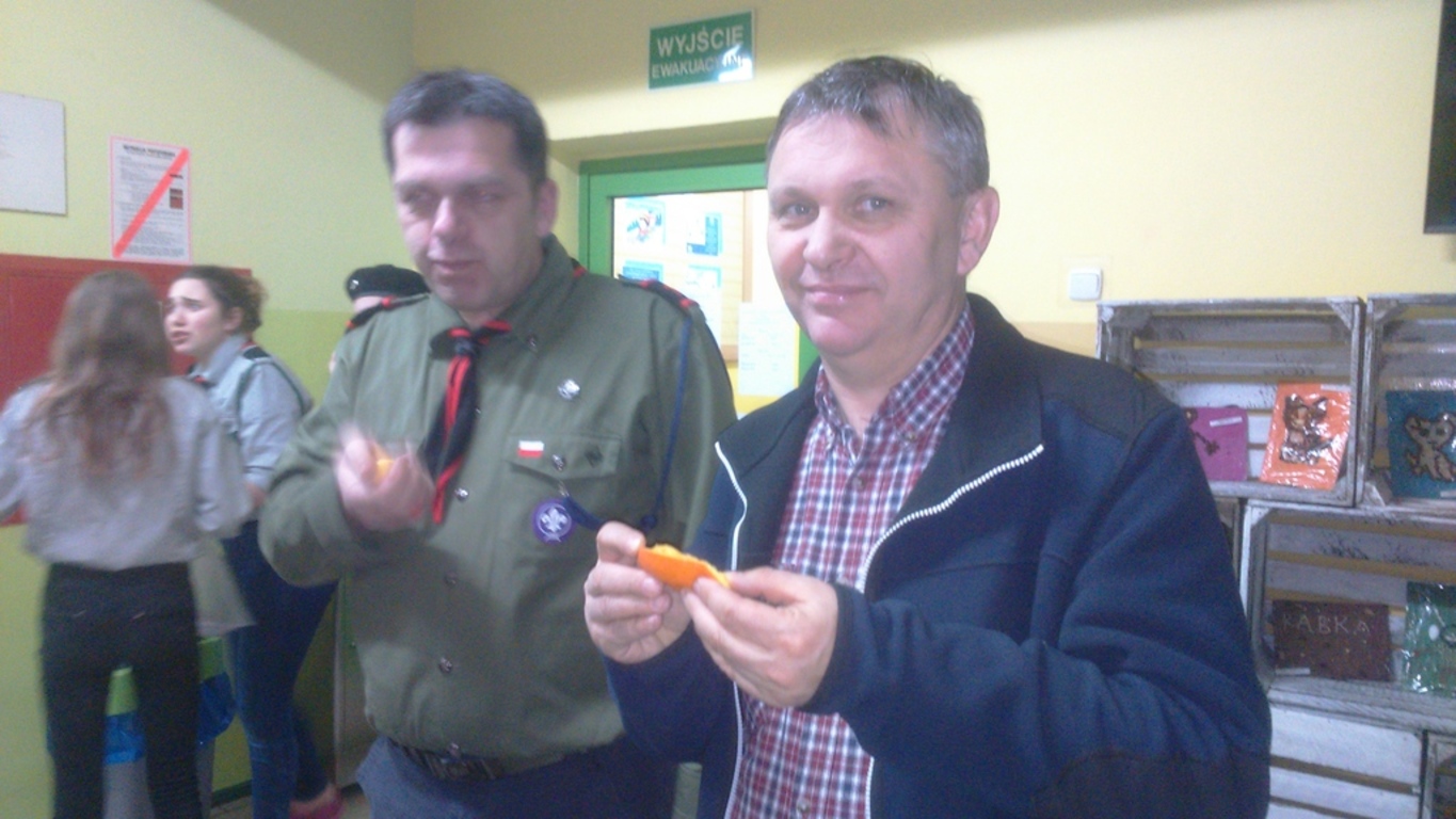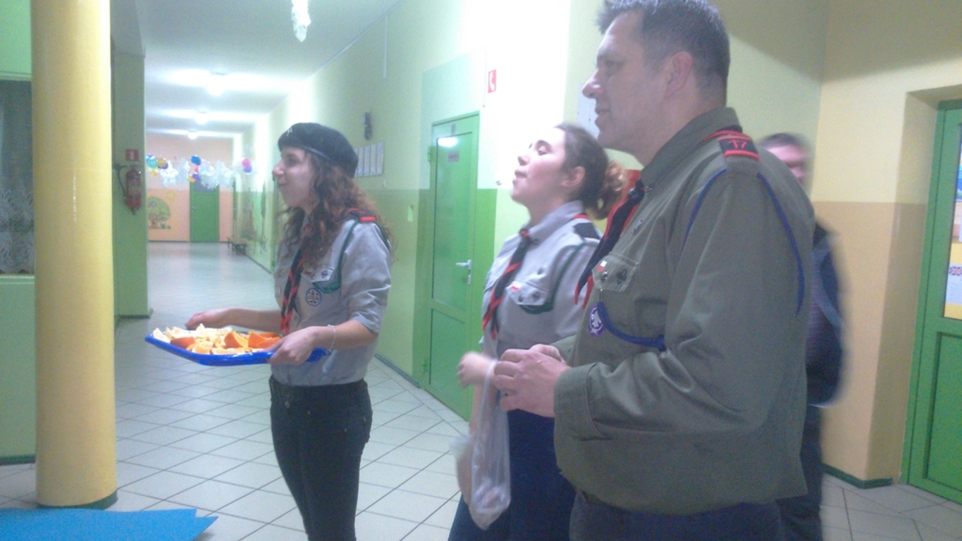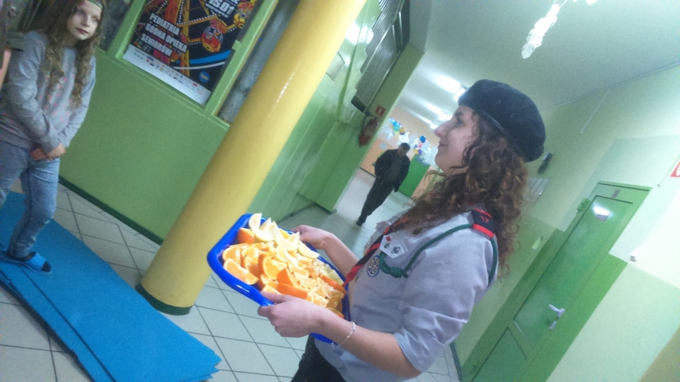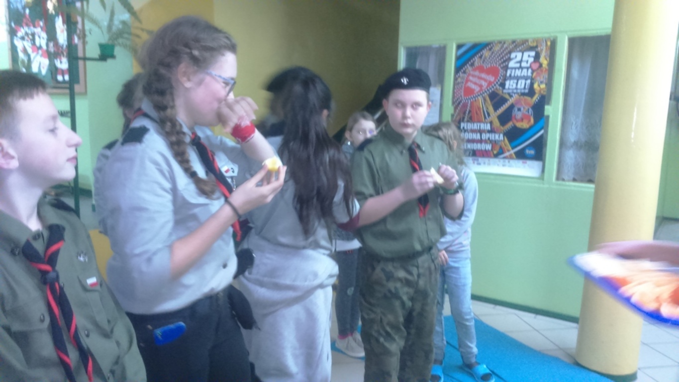 Po trzecie, wziąć udział w quizie z wiedzy o harcerstwie. Przegrani otrzymali do zjedzenia cukierki i cytrynkę na pocieszenie, a wygrani zajadali pomarańcze;-).