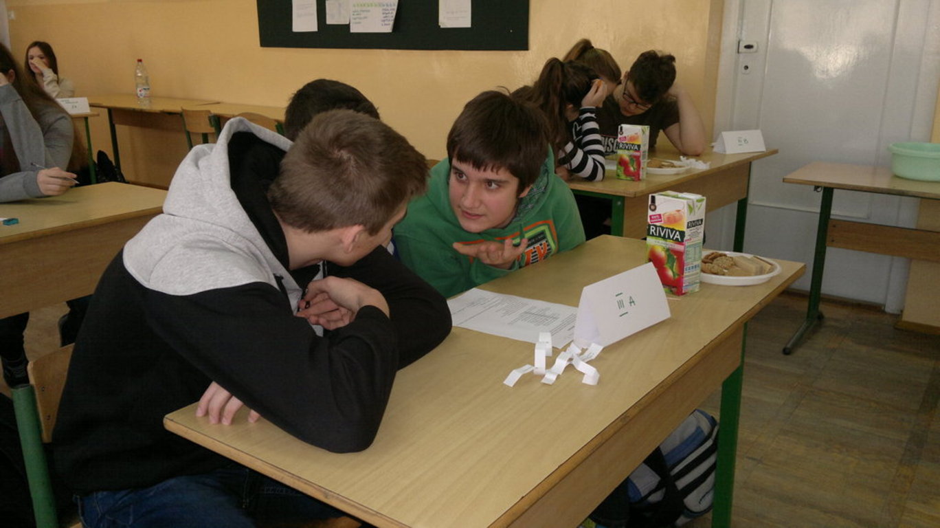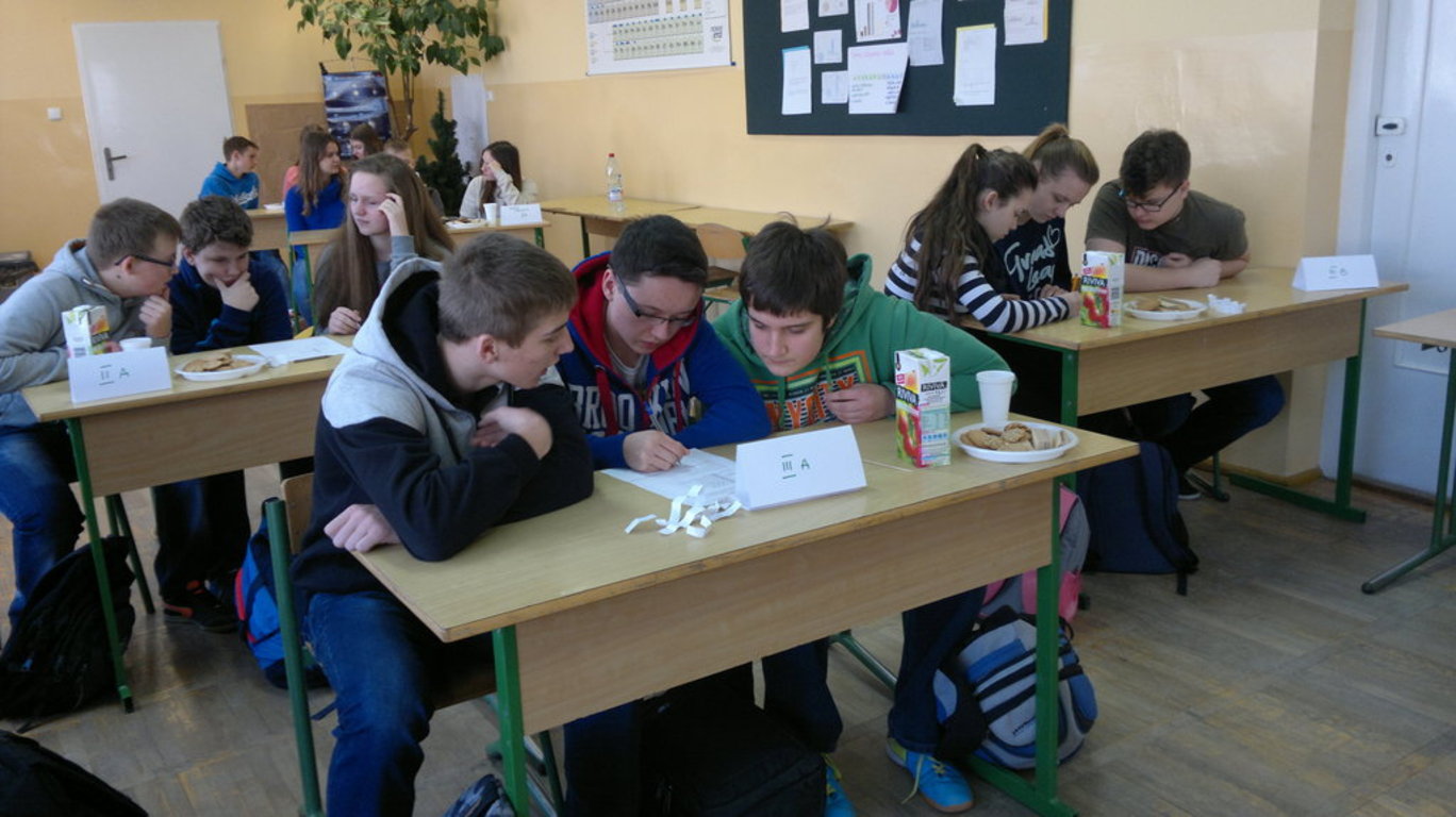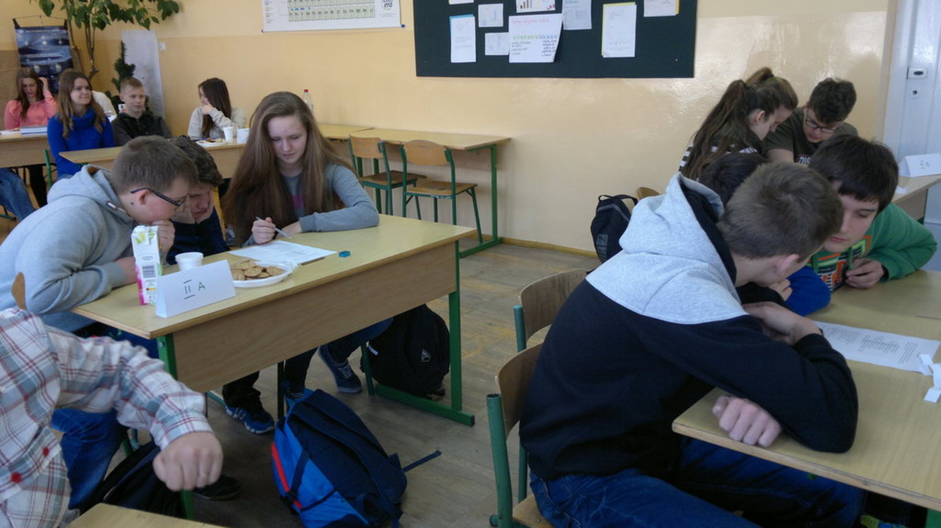 Uczniowie klas II i III naszej szkoły rywalizowali między sobą w pięciu konkurencjach: szybka odpowiedź, krzyżówka, zadanie z mapą, pokaz chemiczny oraz test wiedzy.
