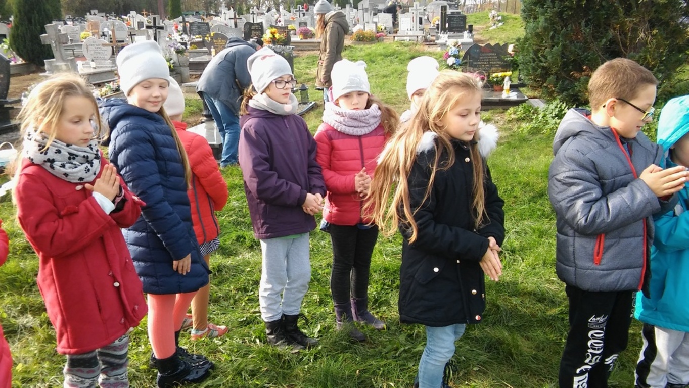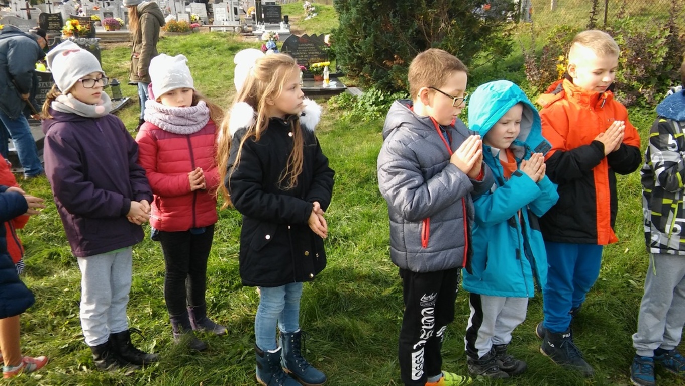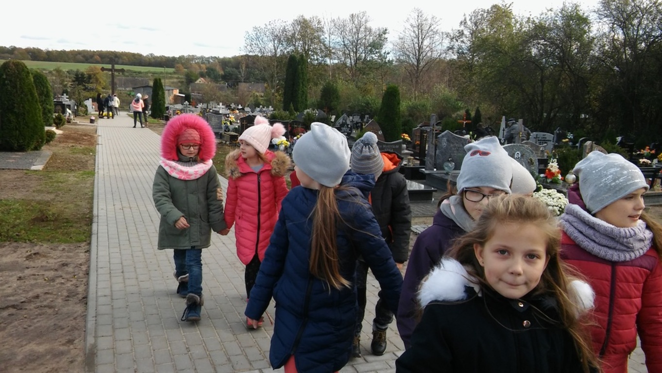 Tradycyjnie już, przed świętem Wszystkich Świętych, dzieci z klasy IIIa poszły na pobliski cmentarz. Uczniowie zapalili znicz na bezimiennym grobie. W zadumie przyglądały się ludziom jak dbają o groby bliskich...