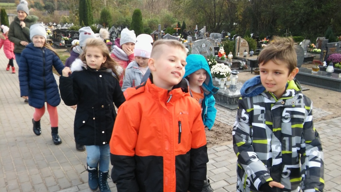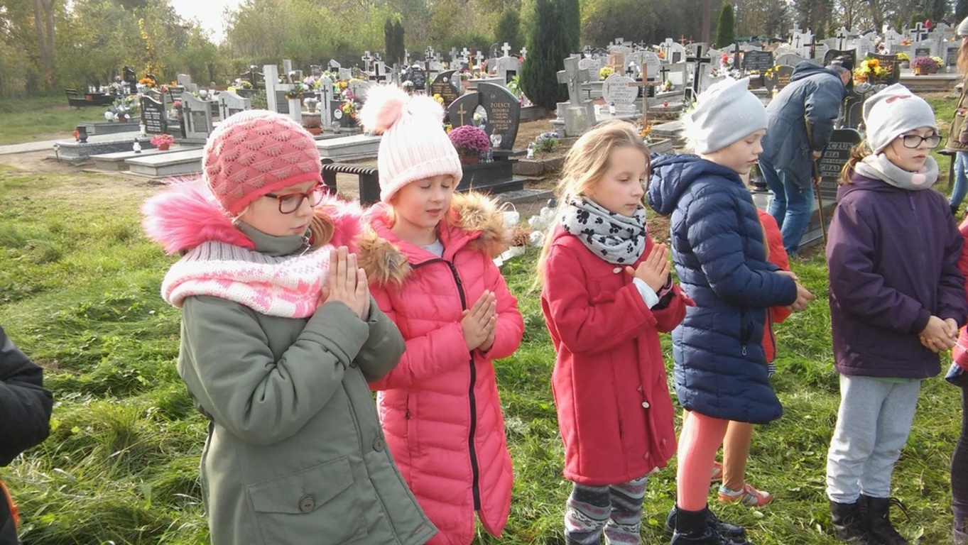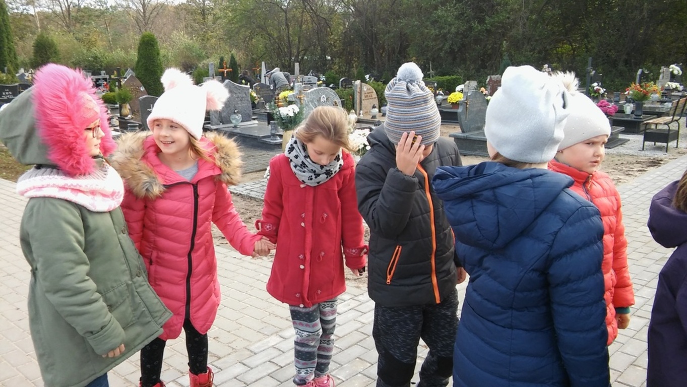 Tradycyjnie już, przed świętem Wszystkich Świętych, dzieci z klasy IIIa poszły na pobliski cmentarz. Uczniowie zapalili znicz na bezimiennym grobie. W zadumie przyglądały się ludziom jak dbają o groby bliskich...