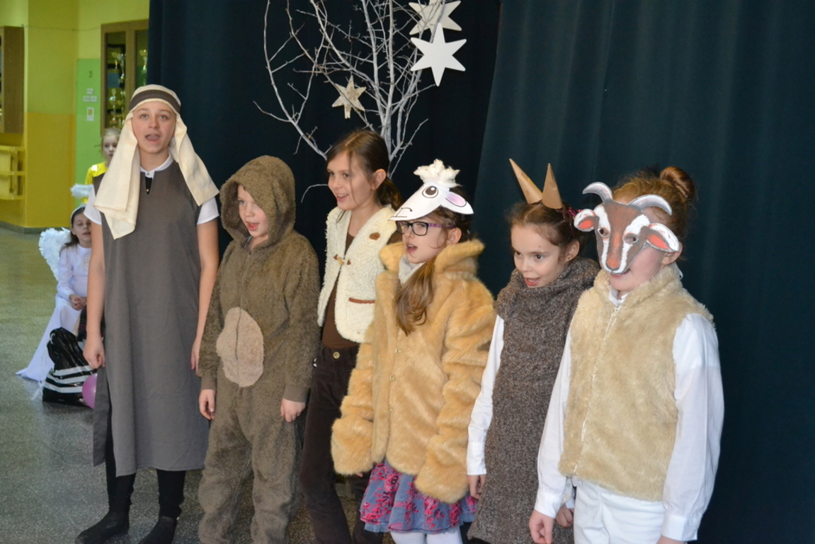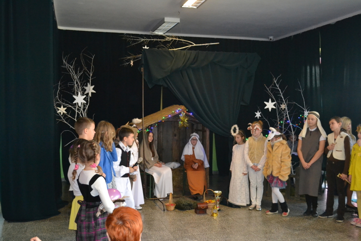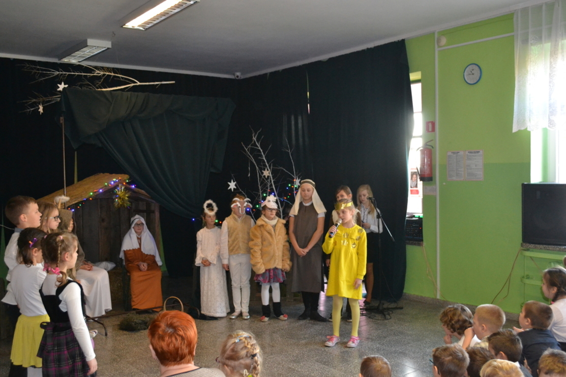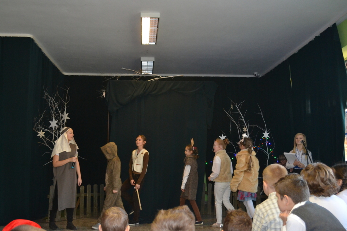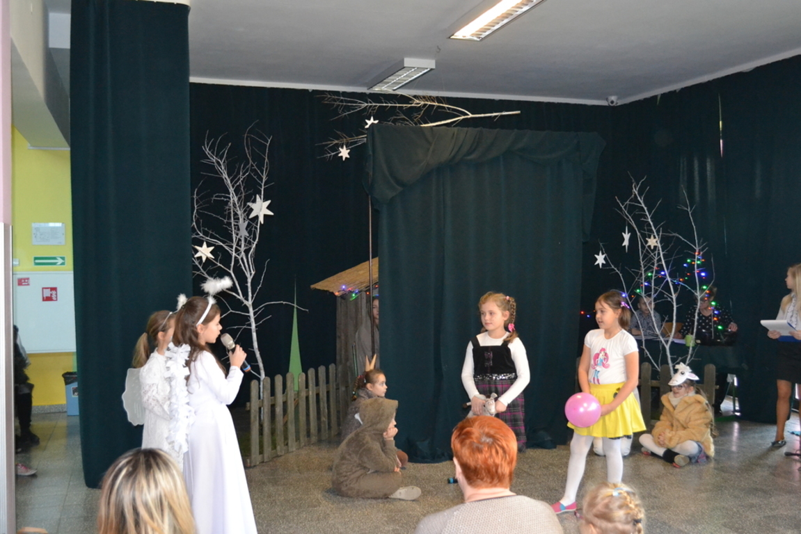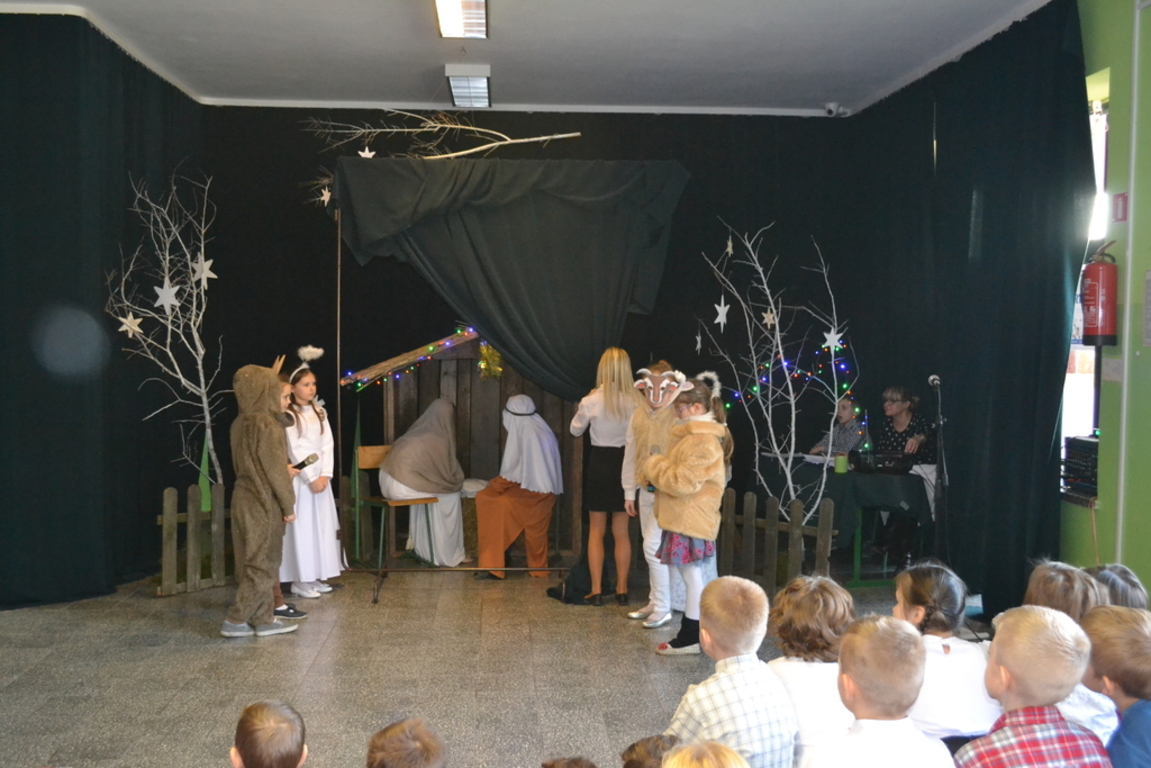 Boże Narodzenie to czas, kiedy wszyscy stają się dla siebie bardziej życzliwi, milsi i zapominają o wszelkich sporach oraz waśniach. Aby podkreślić wyjątkowy charakter tych świąt, już tradycyjnie jak co roku uczniowie klas I-VI pod opieka nauczycielek: M.Łapa i M.Wojtysiak przygotowali jasełka, które przybliżyły wszystkim atmosferę tego szczególnego okresu. Oglądając przedstawienie, czuło się nastrój świąt Bożego Narodzenia. Publiczność po raz kolejny mogła przeżyć historię Marii i Józefa szukających miejsca do schronienia na noc, którzy po bezowocnych poszukiwaniach zdecydowali się przenocować w stajni. Jednak to do nich i małego Jezuska przybyli tak honorowi goście jak trzej mędrcy i złożyli dzieciątku pokłon. Całość przedstawienia pokazująca scenki z życia nowonarodzonego dzieciątka, pasterzy, mędrców, rodzin oraz aniołów przeplatana była pastorałkami, które tematycznie były powiązane z treścią przedstawienia. Ogromne zaangażowanie młodych aktorów i nauczycielek opłaciło się, gdyż przedstawienie wywarło duże wrażenie i poruszenie. Natomiast dzieci miały możliwość uczestniczenia w tradycji, a także możliwość zaprezentowania swoich umiejętności artystycznych. Puentą biblijnej historii stały się słowa pastorałki „On jest królem”.