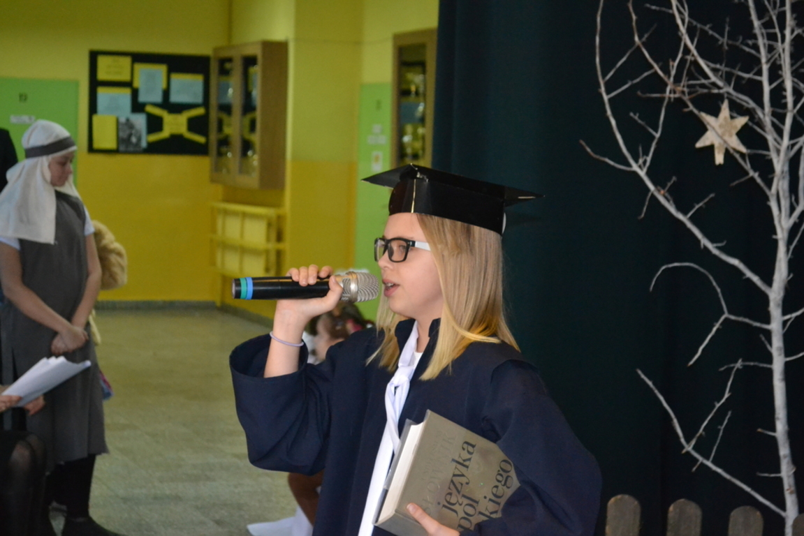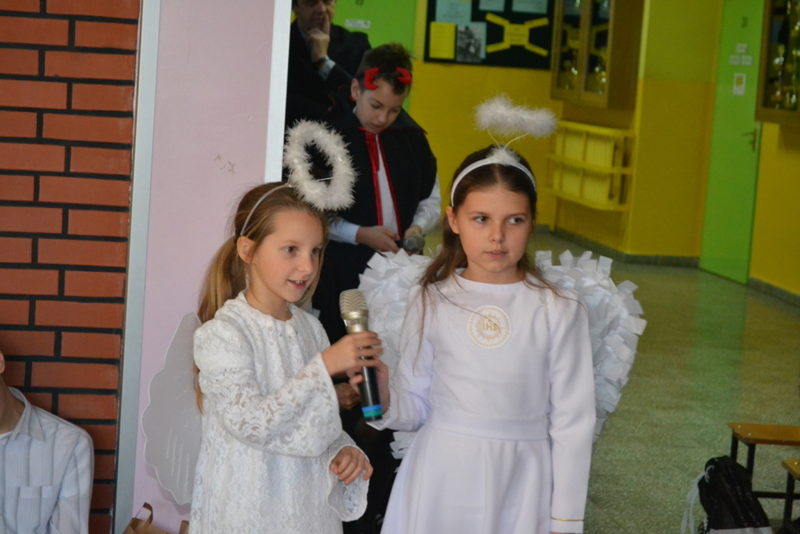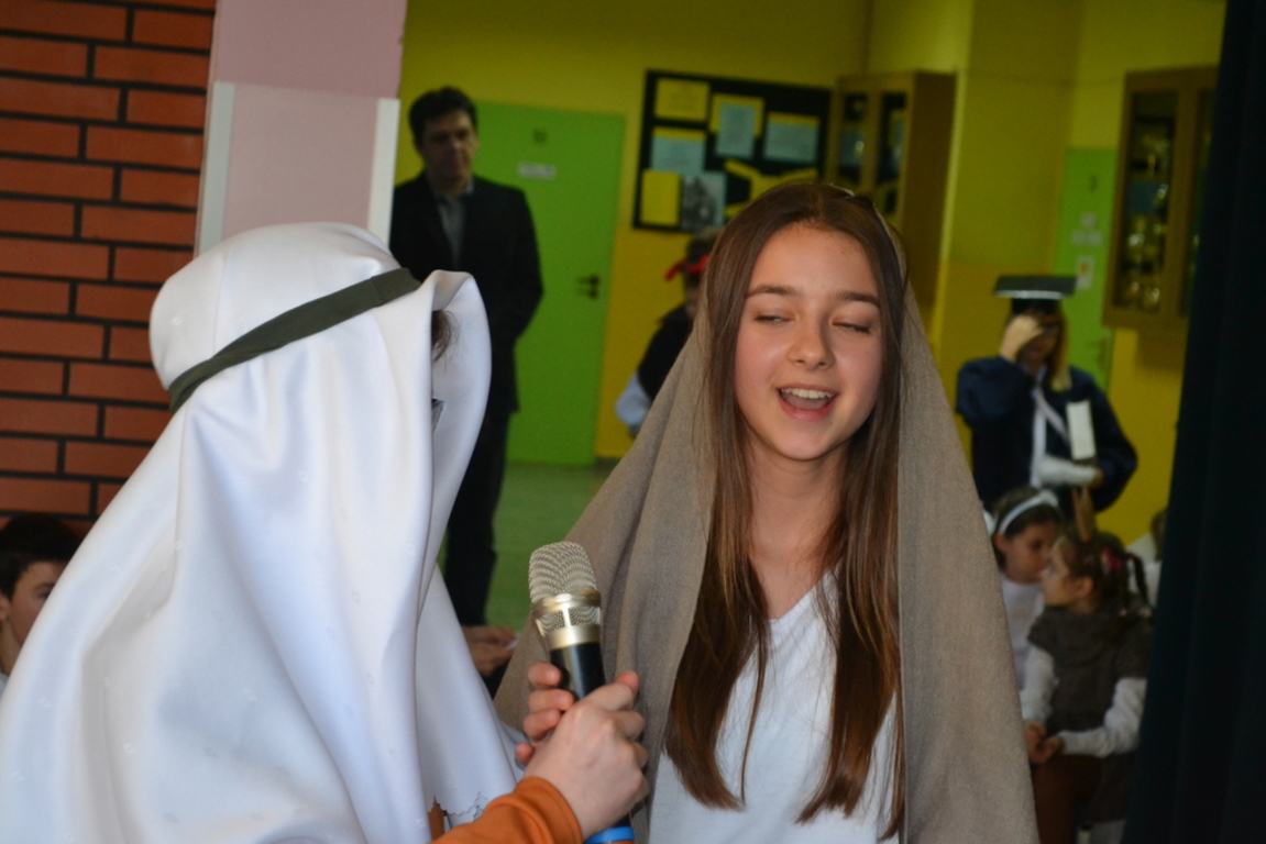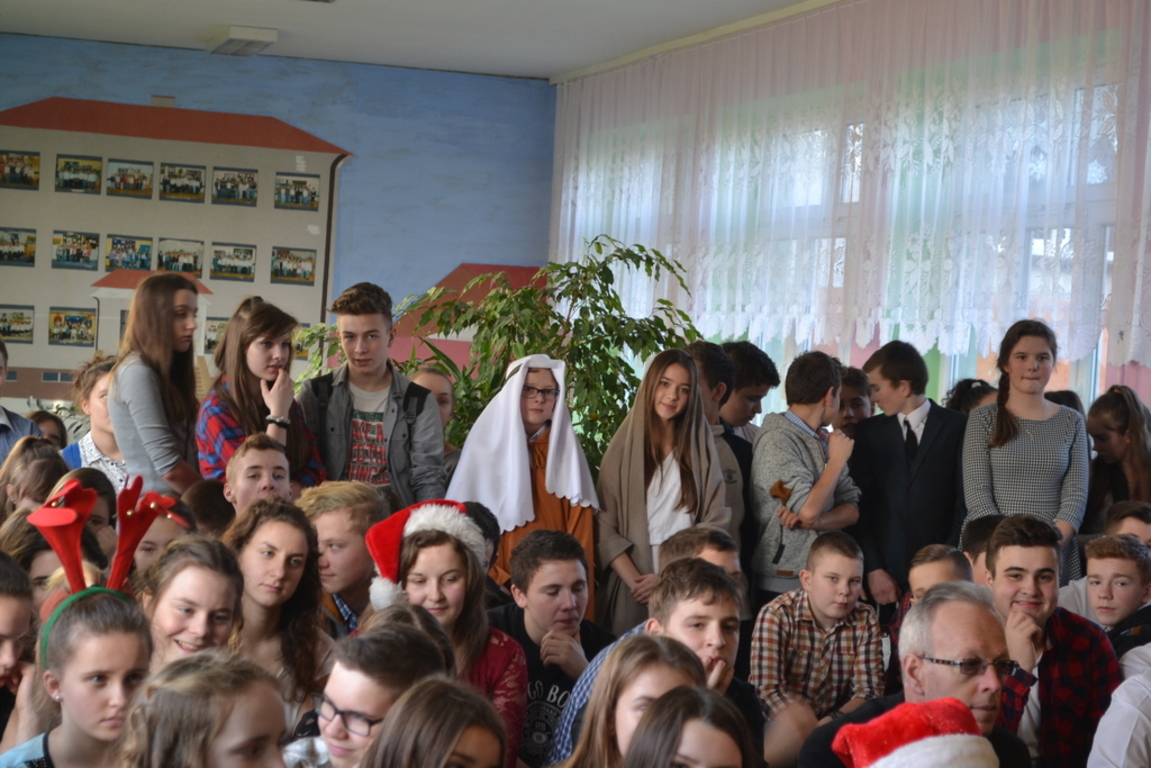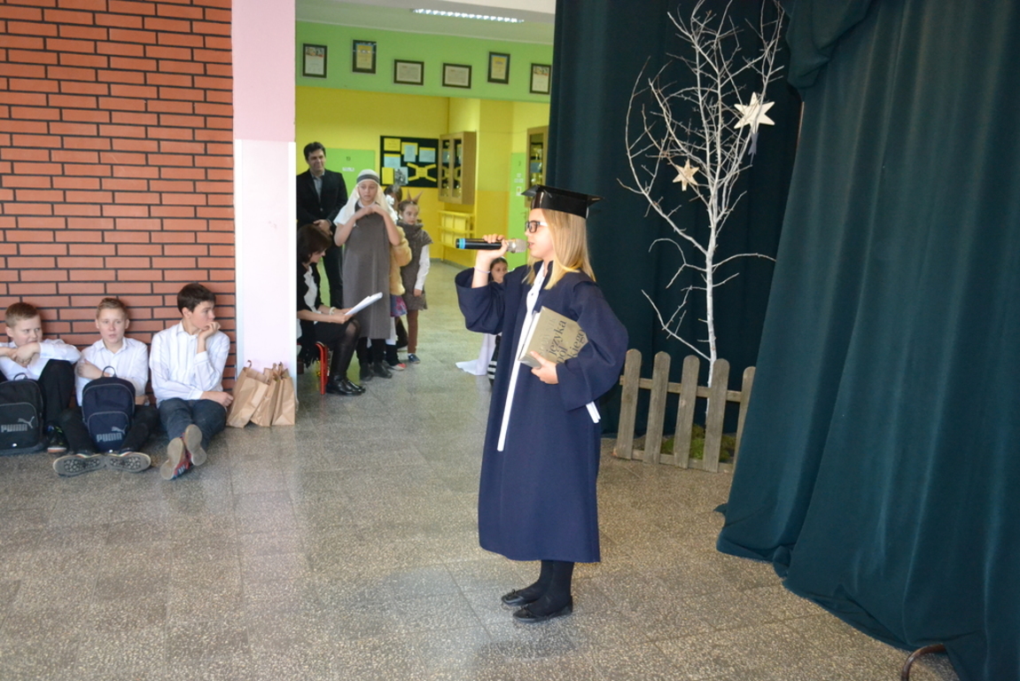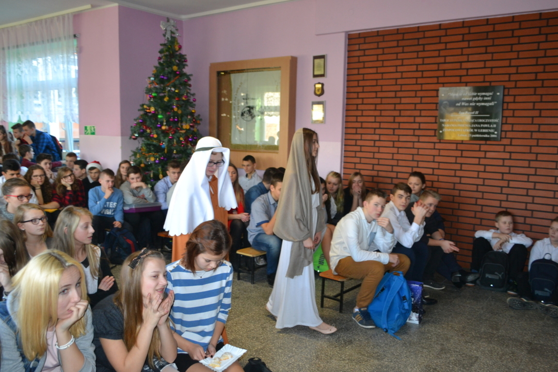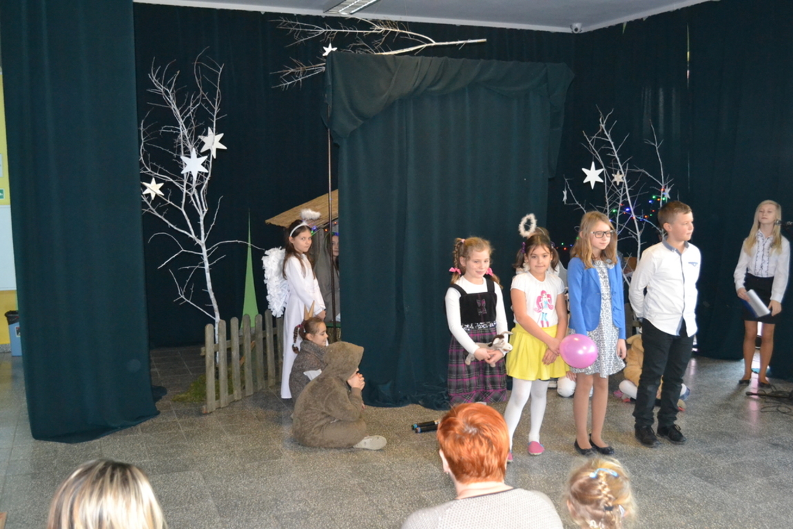 Boże Narodzenie to czas, kiedy wszyscy stają się dla siebie bardziej życzliwi, milsi i zapominają o wszelkich sporach oraz waśniach. Aby podkreślić wyjątkowy charakter tych świąt, już tradycyjnie jak co roku uczniowie klas I-VI pod opieka nauczycielek: M.Łapa i M.Wojtysiak przygotowali jasełka, które przybliżyły wszystkim atmosferę tego szczególnego okresu. Oglądając przedstawienie, czuło się nastrój świąt Bożego Narodzenia. Publiczność po raz kolejny mogła przeżyć historię Marii i Józefa szukających miejsca do schronienia na noc, którzy po bezowocnych poszukiwaniach zdecydowali się przenocować w stajni. Jednak to do nich i małego Jezuska przybyli tak honorowi goście jak trzej mędrcy i złożyli dzieciątku pokłon. Całość przedstawienia pokazująca scenki z życia nowonarodzonego dzieciątka, pasterzy, mędrców, rodzin oraz aniołów przeplatana była pastorałkami, które tematycznie były powiązane z treścią przedstawienia. Ogromne zaangażowanie młodych aktorów i nauczycielek opłaciło się, gdyż przedstawienie wywarło duże wrażenie i poruszenie. Natomiast dzieci miały możliwość uczestniczenia w tradycji, a także możliwość zaprezentowania swoich umiejętności artystycznych. Puentą biblijnej historii stały się słowa pastorałki „On jest królem”.