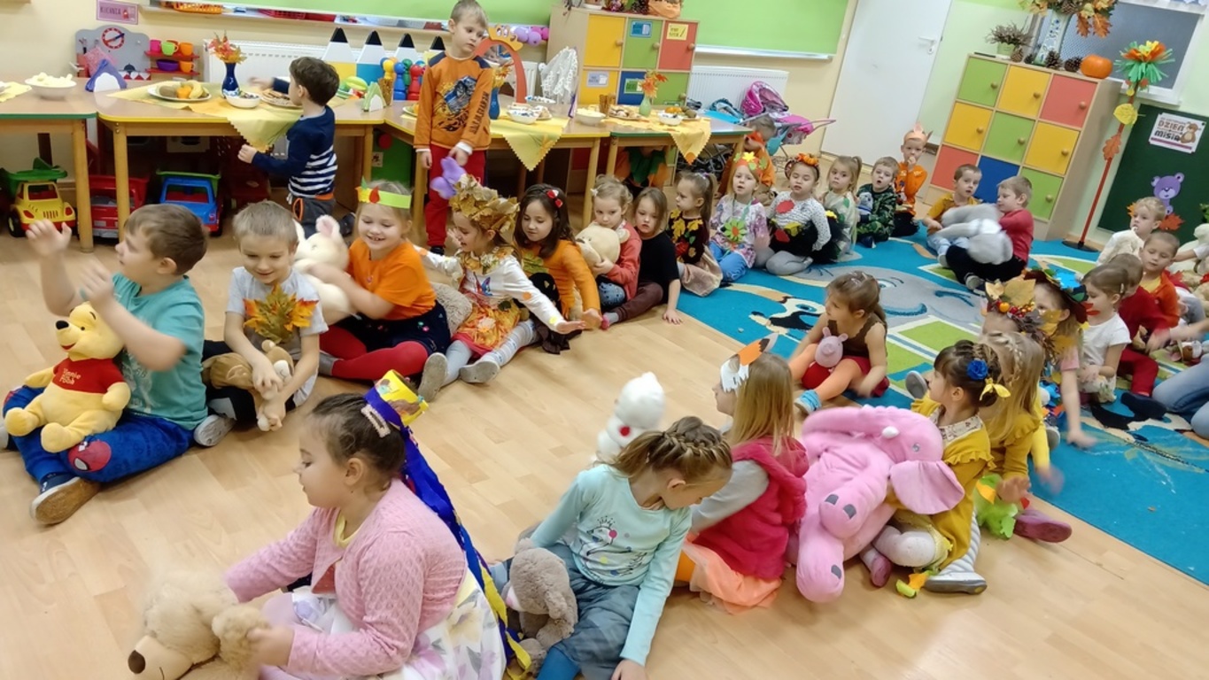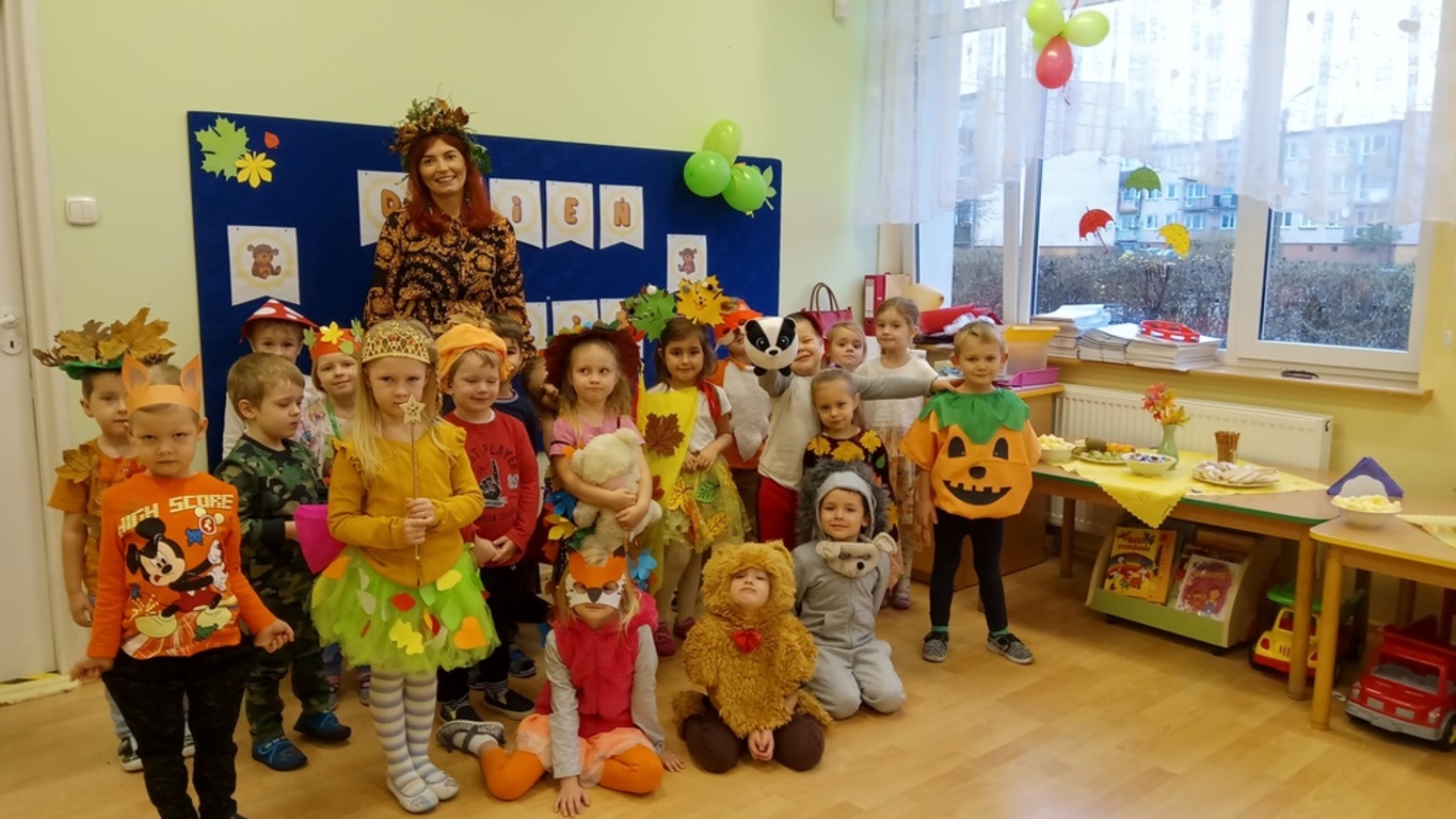 Mimo, iż opadają liście i jest chłodno, jesienią wcale nie musi być smutno ... W naszym przedszkolu było dziś słonecznie, bajecznie i bardzo radośnie. Rodzice i dzieci przygotowały bardzo ciekawe i pomysłowe stroje. Na balu bawiły się jeże, lisy, muchomory, listki, drzewa a także warzywa. Mali, jesienni przebierańcy bawili się doskonale, czego dowodem były uśmiechy na twarzach. Następne spotkanie z Panią Jesień już za rok.