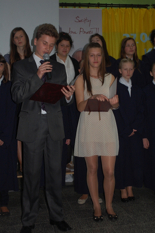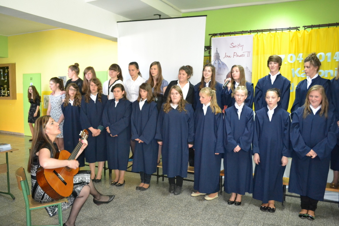 Wszystkie te działania wpłynęły z pewnością na integrację dzieci i młodzieży we wspólnych przedsięwzięciach. Były okazją do wielu wspomnień i wzruszeń. Podczas wszystkich przygotowań towarzyszyło nam uczucie dumy i odpowiedzialności. Należymy przecież do Rodziny Szkół imienia Jana Pawła II! 16 czerwca 2014 odbędzie się w naszej szkole VII Gminny Konkurs Pieśni Religijnej, którego hasło brzmi: „Ojcu Świętemu śpiewajmy”. Będzie to kolejny etap wyrażania radości z kanonizacji Patrona naszej szkoły.