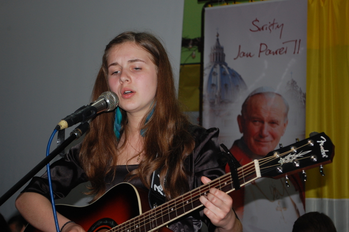 wyeksponowano piękne prace plastyczne, portrety Papieża, wykonane przez uczniów w związku z ogłoszonym konkursem plastycznym. Nie zapomnieliśmy również o tym, że piłka nożna była jedną z ulubionych dziedzin sportu Karola Wojtyły. Odbyły się w związku z tym rozgrywki sportowe między uczniami klas pierwszych gimnazjum.