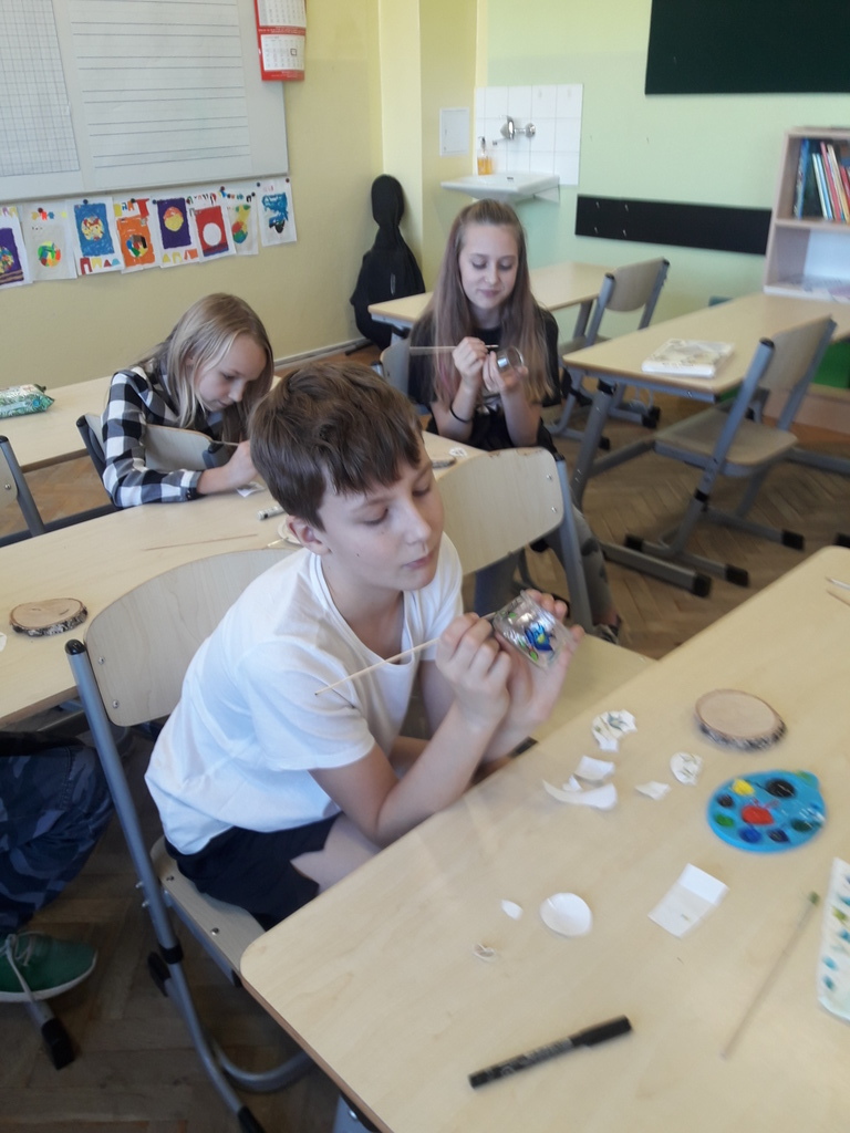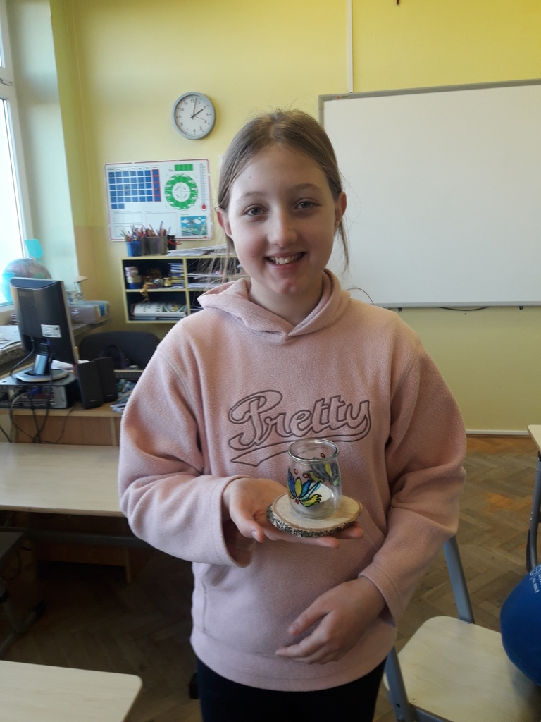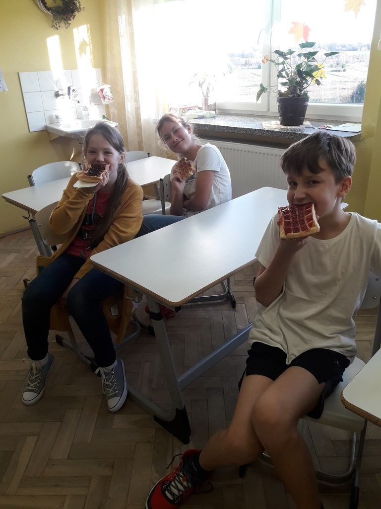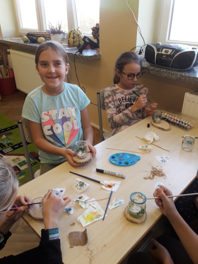 Na listopadowe spotkanie pt.”Moja mała ojczyzna- Kaszuby. Poznajemy swój region.” zaprosiliśmy prawdziwą Kaszubkę- Panią Bożenę. Nasz niezwykły gość opowiedział nam o dawnych zwyczajach i tradycjach kaszubskich. Pani Bożena nawiązała też do tradycji bożonarodzeniowych i wielkanocnych, które pielęgnowano w jej rodzinnym domu na Kaszubach. Uczniowie byli zachwyceni , kiedy Pani Bożena mówiła w języku kaszubskim. Całkiem nieźle radzili sobie z tłumaczeniem. Następnie wspólnie z gościem zaśpiewali „Kaszubskie nuty” i „Kaszubskie jeziora” . Podczas tego spotkania odbyły się również warsztaty „Malowanie na szkle”- dzieci wykonały piękne świeczniki z elementami wzoru kaszubskiego. Kolejnym punktem spotkania były smakowite gofry z dżemem. To było bardzo ciekawe i pouczające spotkanie.