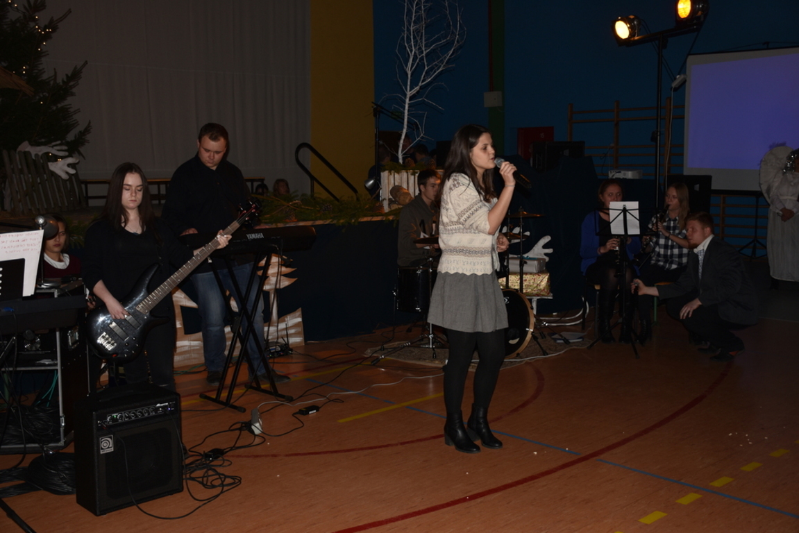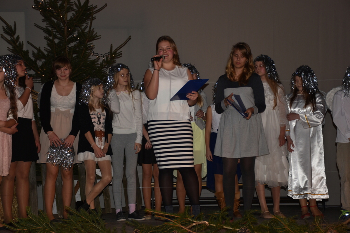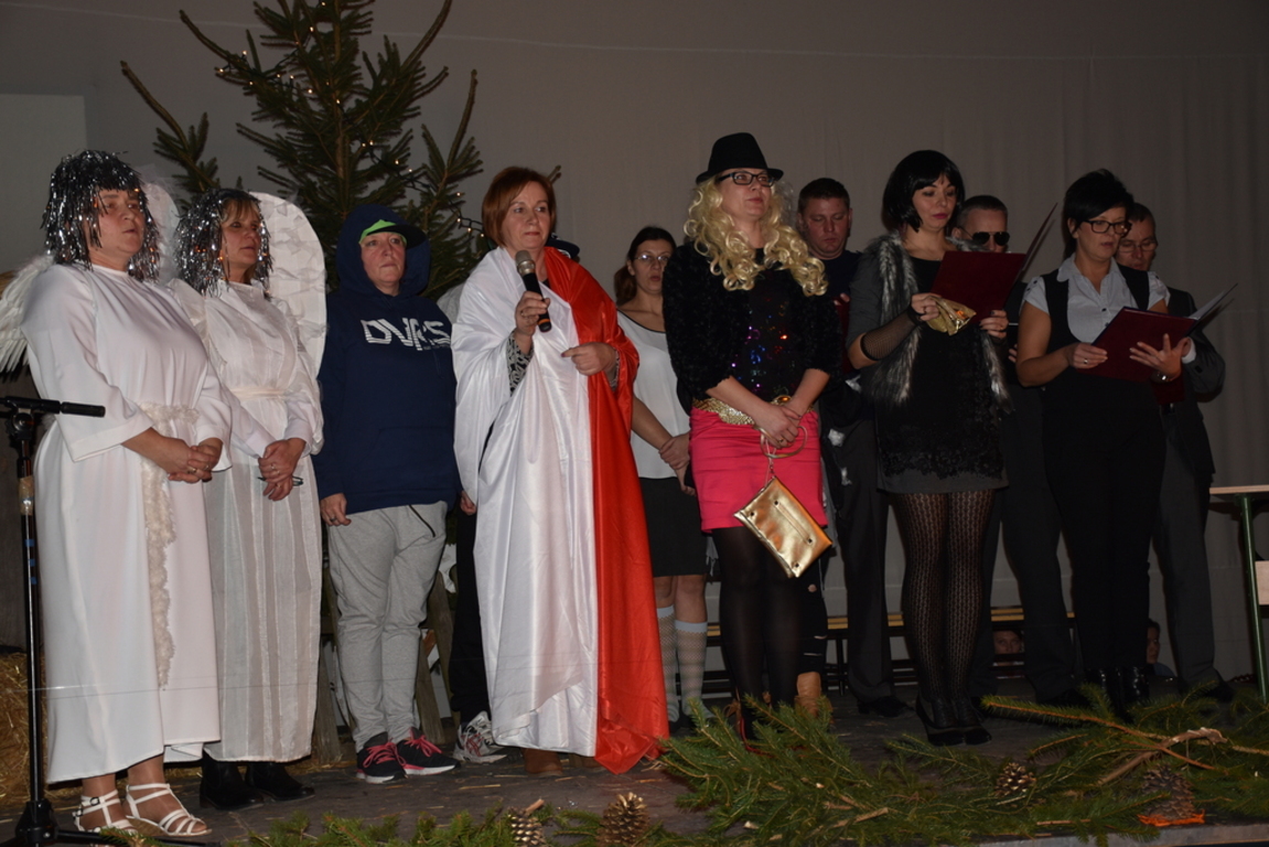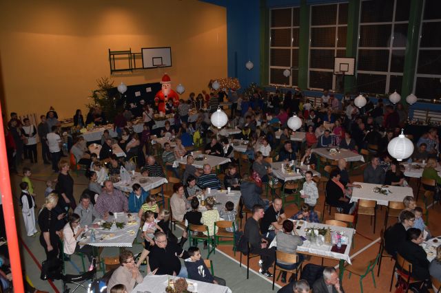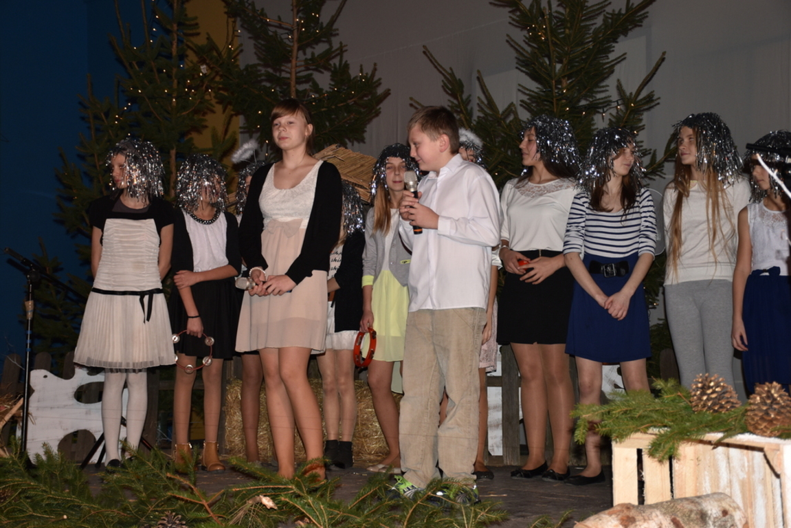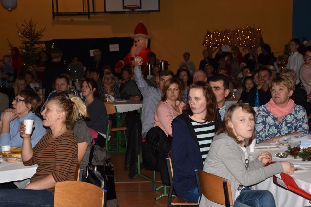 Scena stała się miejscem, gdzie swoje talenty muzyczne i taneczne mogli zaprezentować uczniowie naszej szkoły. Kolędy i piosenki świąteczne śpiewały dzieci z klasy 2. szkoły podstawowej, uczniowie i chór z klasy 5., Monika Detlaf z klasy VI, a także dzieci uczące się języka kaszubskiego. Wystąpiły także uczennice gimnazjum: Paulina Górczyńska, Julia Prokopowicz, Monika Mydlach i Julia Wolska. Niewątpliwą atrakcją stało się przedstawienie jasełkowe przygotowane przez rodziców i nauczycieli. Także rodzice, tak jak ich dzieci, okazali się bardzo utalentowanymi aktorami. W ten niezwykły wieczór wsparli nas też nasi absolwenci: Katarzyna Kobiela i grupa muzyczna młodzieży z Zespołu Szkół Gospodarki Żywnościowej i Agrobiznesu w Lęborku, w składzie której są nasi byli uczniowie oraz zespół taneczny Tempo z Lęborka z solistką Joanną Dawidowską.
