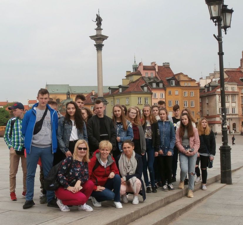 Od 24 do 26 kwietnia uczniowie klas drugich gimnazjum spędzili trzy wspaniałe dni w Warszawie. Mieli oni okazję zapoznać się z najważniejszymi punktami na mapie stolicy. Grupa rozpoczęła zwiedzanie wizytą w Łazienkach Królewskich, gdzie bardzo ciepło powitały ich urocze wiewiórki:) Następnie udali się pod Belweder, Pałac Kultury i Nauki gdzie mieli okazję podziwiać panoramę miasta z XXX piętra. Kolejnym punktem programu był Grób Nieznanego Żołnierza, Plac Piłsudskiego, spacer Krakowskim Przedmieściem, Pomnik Małego Powstańca, Syrenki, Powązki i Getto- miejsce szczególne ze względu na kwietniową akcję z żonkilami dla upamiętnienia rocznicy Powstania, w której od czterech lat nasi uczniowie biorą udział. Dzięki obecności przewodnika uczniowie mieli okazję poznać historię i ciekawostki związane ze zwiedzanymi miejscami. Drugi dzień wycieczki był równie ciekawy- zwiedzanie Zamku Królewskiego, spacer po Placu Zamkowym, multimedialne muzeum Fryderyka Chopina i Stadion Narodowy, który odkrył swoje wszystkie tajemnice: szatnie naszej kadry, ławki rezerwowych, murawę. Trzeci i ostatni dzień to Muzeum Historii Żydów Polskich Polin- niezwykle wartościowa, prawie trzygodzinna lekcja historii. Ostatnim miejscem był plan filmowy w Wytwórni Filmów Dokumentalnych i Fabularnych. Tam, poza zdobyciem wiedzy na temat różnych etapów powstawania filmów, uczniowie mogli przez chwilę poczuć się jak gwiazdy filmowe, pozując do zdjęć w kostiumach wykorzystywanych przy tworzeniu filmów historycznych.
