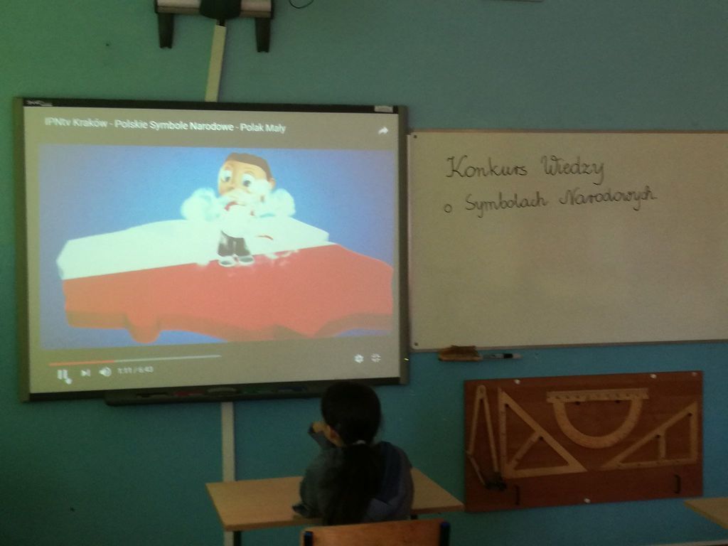 18 maja w naszej szkole odbył się Konkurs Wiedzy o Symbolach Narodowych dla uczniów klas IV- VII SP. Konkurs cieszył się dużym zainteresowaniem i uczniowie wykazali się w nim ogromną wiedzą na temat flagi, godła i hymnu naszego państwa. Po teście nastąpiła emisja ciekawego filmiku- "Kto Ty jesteś?"