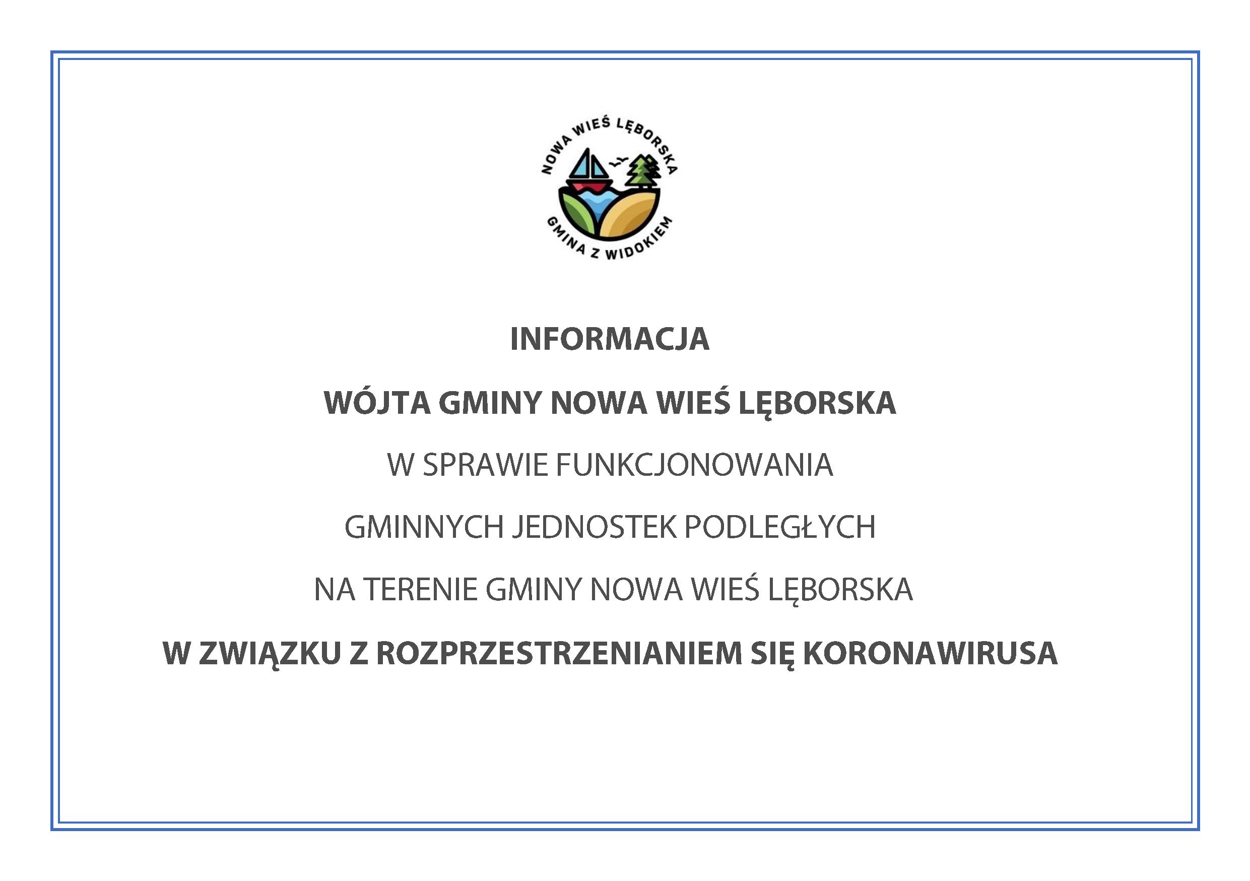KORONAWIRUS. INFORMACJA WÓJTA GMINY NOWA WIEŚ LĘBORSKA