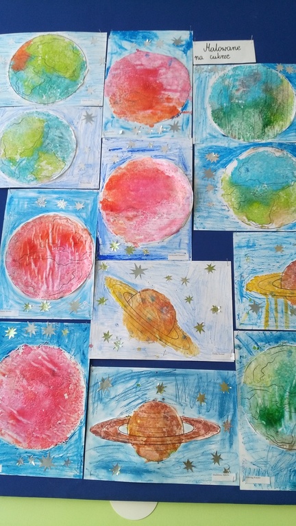 W ramach zajęć o tematyce kosmicznej "Pszczółki" poznały wiele nowych zagadnień; dzieci miały okazję dowiedzieć się co to jest przestrzeń kosmiczna, kto to jest kosmonauta, jak wygląda rakieta kosmiczna, ile jest planet, jak wyglądają gwiazdy, galaktyka itp. Zastanawiały się też, czy ufoludki naprawdę istnieją i czy mogą do nas przylecieć swoimi statkami kosmicznymi. Przez cały tydzień uczestniczyły w zajęciach wykonując m.in. rakiety kosmiczne, ufoludki - gniotki, galaktykę "w słoiku". Malowały także Układ Słoneczny na ulubionej już technice malowania - na streczu, a także malowały planety, poznając nową technikę malowana - na cukrze. Przez cały tydzień panowała bardzo „nieziemska” atmosfera!
