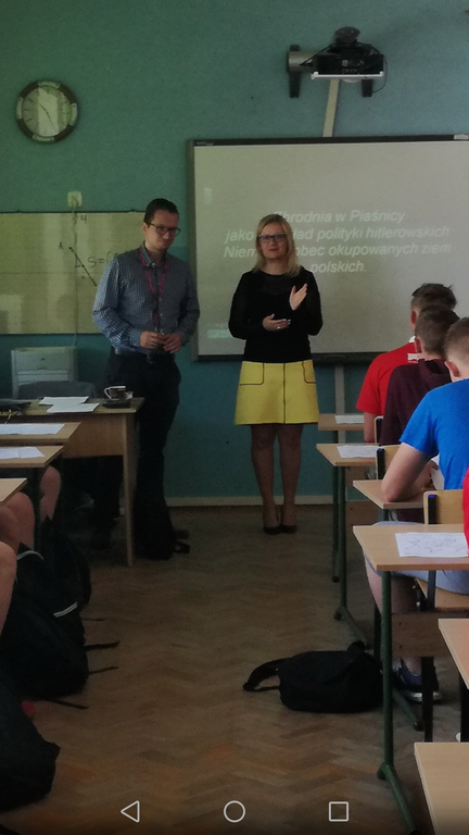 Dnia 22 maja naszą szkołę odwiedził Pan Daniel Sieczkowski z Instytutu Pamięci Narodowej z Gdańska. Pan Daniel poprowadził zajęcia z klasami drugimi gimnazjum na temat "Zbrodnia w Piaśnicy". Młodzież z zainteresowaniem słuchała prelekcji o tak ciężkiej tematyce, związanej z naszym najbliższym regionem. Dziękujemy za ciekawe zajęcia.