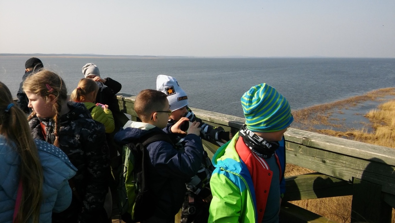 W piękny kwietniowy dzień, uczniowie z klasy IIIa i IIIb wybrali się na lekcję przyrody do Słowińskiego Parku Narodowego. W muzeum w Rąbce, dzieci dowiedziały się wiele ciekawych informacji o zwierzętach zamieszkujących nasze piękne tereny. Posłuchaliśmy też "bicia serca drzewa" - to soki, które wczesną wiosną wędrują od korzeni do korony drzewa. Były też integrujące zabawy ruchowe. Na koniec lekcji poszliśmy na pobliską wieżę widokową podziwiać krajobraz Słowińskiego Parku Narodowego.