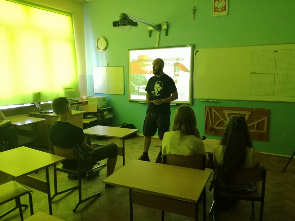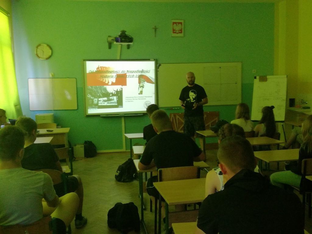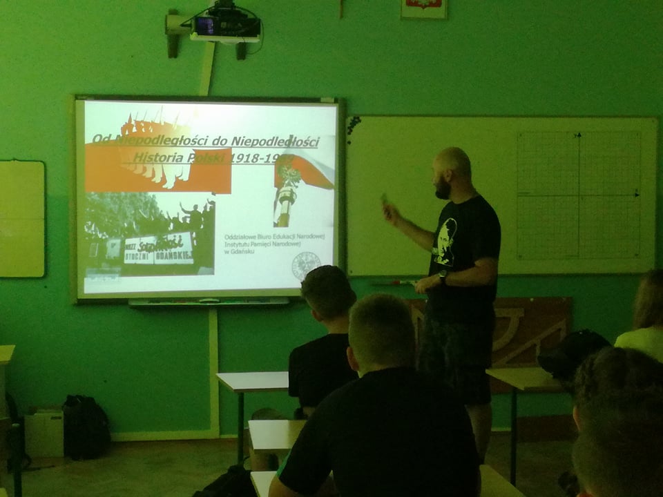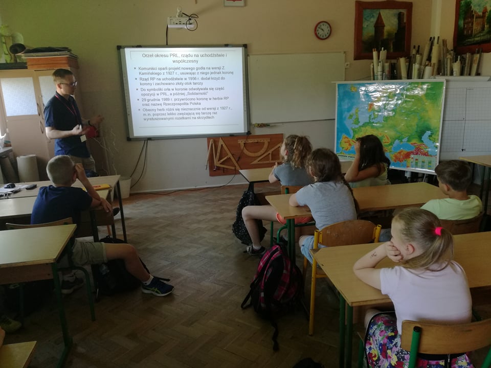 Dnia 30 maja 2018 roku po raz kolejny gościliśmy w naszej szkole historyków z Instytutu Pamięci Narodowej z Gdańska. Przeprowadzili oni bardzo ciekawe zajęcia z młodzieżą od czwartej klasy SP do trzeciej klasy gimnazjum na tematy: "Od Niepodległości do Niepodległości. Historia Polski od 1918 do 1989" oraz "Z flagą narodową przez najnowszą historię Polski". Zajęcia te to kolejne działanie, które podjęliśmy w celu uczczenia 100 Rocznicy Odzyskania Niepodległości przez Polskę.