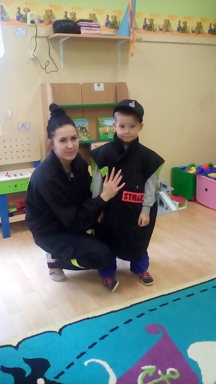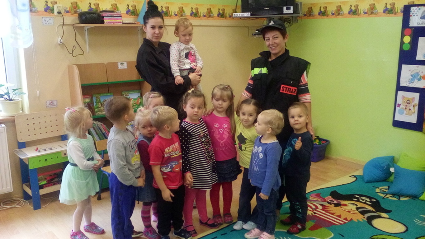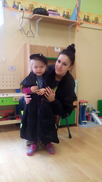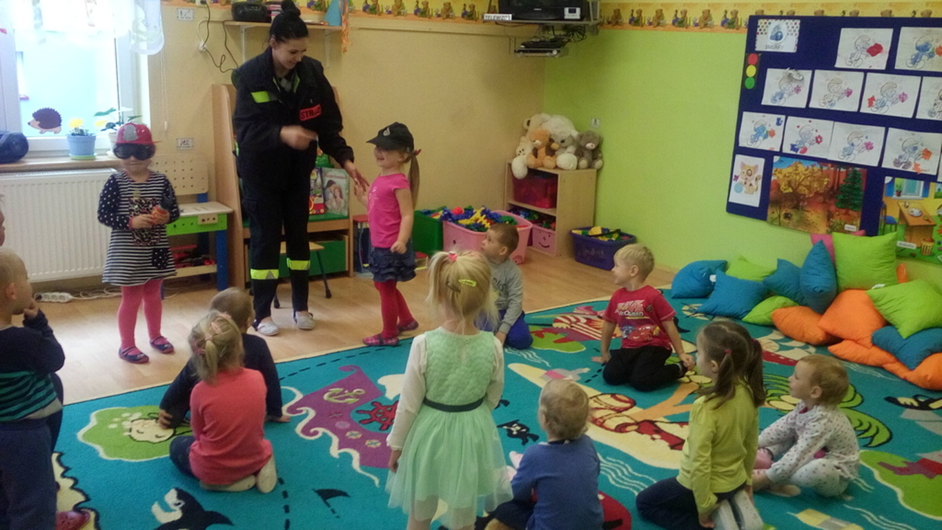 Podczas jednych z zajęć nasze Smerfy zostały uwrażliwione na niebezpieczeństwa jakie można spotkać na drodze. Poznały ważne numery alarmowe, zapoznały się z sygnalizacją świetlną i została im przybliżona postać strażaka. Nie mogło się odbyć bez przymierzenia umundurowania koszarowego, aby choć przez chwilę poczuć się małym strażakiem- bohaterem.