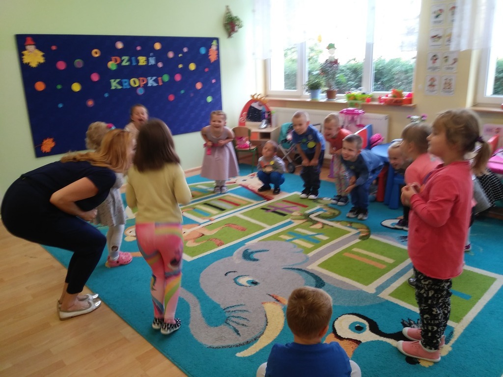 17 września przedszkolaki z grupy Biedronek obchodziły Międzynarodowy Dzień Kropki . Dzieci wysłuchały opowiadania „Kropki Vashti" .Tego dnia wszystkie dzieci miały ubrania w kropki . Przedszkolaki wspólnie ułożyły Kropkowe Drzewo .