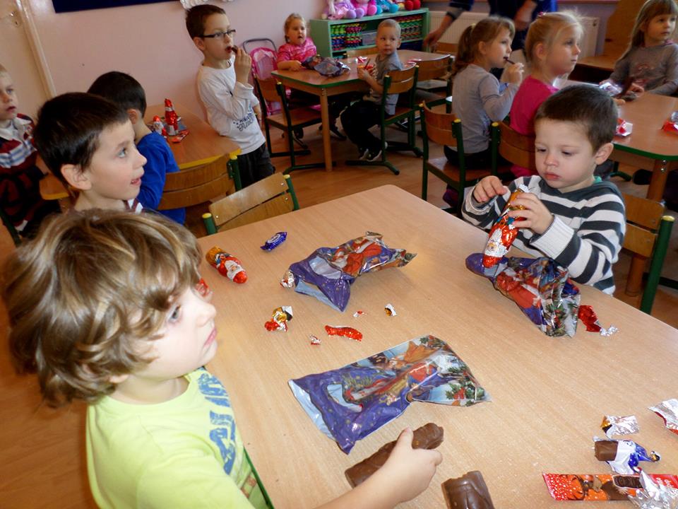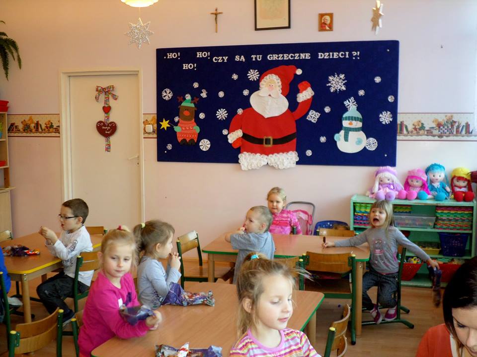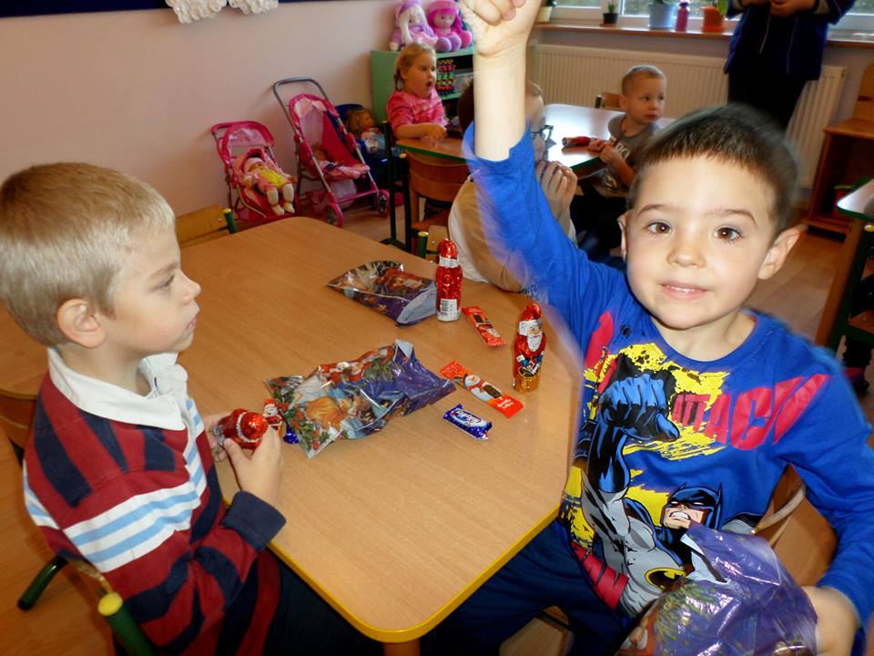 Dnia 05.12.2014 r. do naszego przedszkola przybył Święty Mikołaj! Pod pięknie ozdobioną przez dzieci choinką zostawił czekoladowe upominki. Niestety, Mikołaj bardzo się śpieszył do innych dzieci, więc nasze przedszkolaki go nie zobaczyły, ale kto wie, może niebawem znowu do nas zawita....