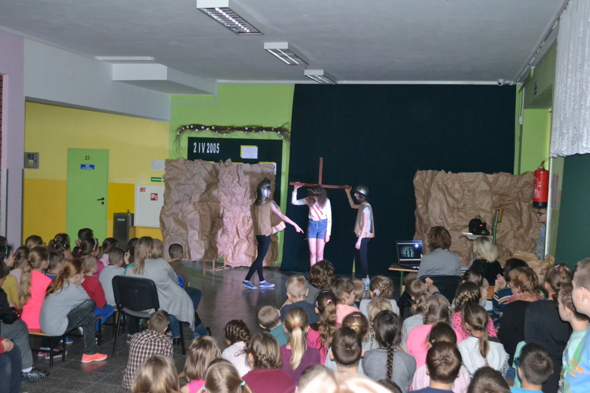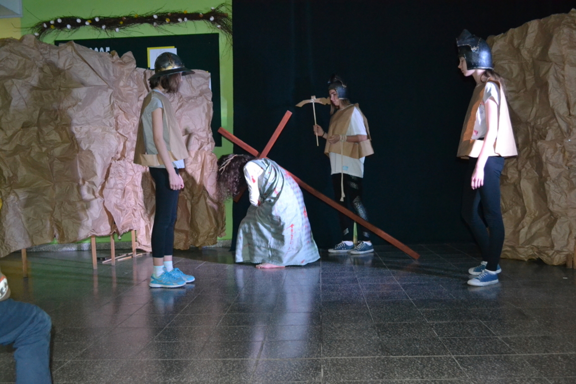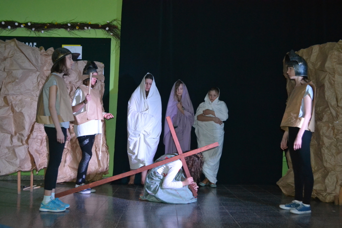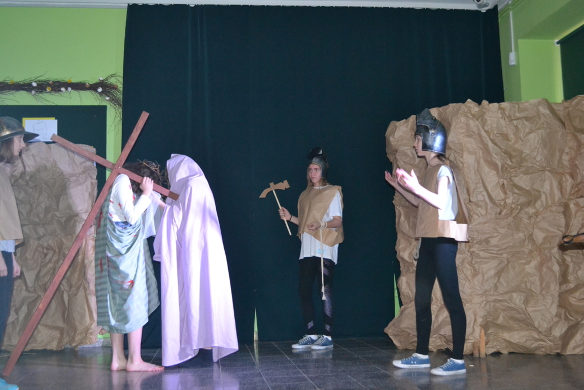 W Wielki Wtorek gościliśmy w naszej szkole uczniów z Zespołu Szkół w Redkowicach. Uczniowie Ci, pod kierunkiem Pani katechetki Joanny Rybickiej przygotowali Misterium Męki Pańskiej. Dziękujemy bardzo naszym kolegom i koleżankom oraz pani katechetce za wprowadzenie nas w atmosferę Triduum Paschalnego. Wszyscy w skupieniu słuchaliśmy słów i muzyki . która przepełniała mury naszej szkoły.