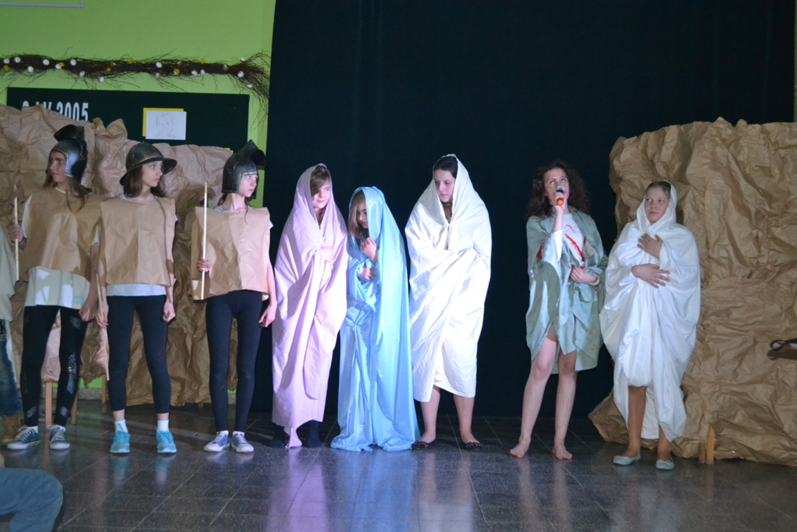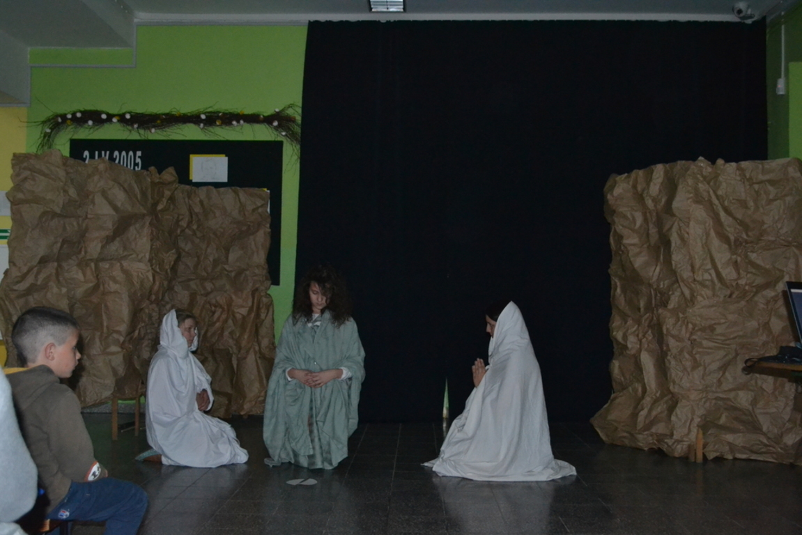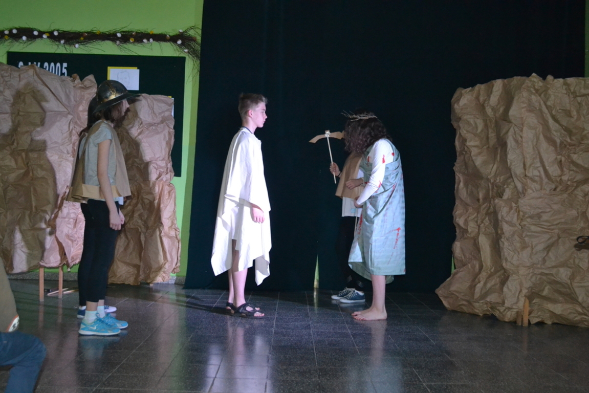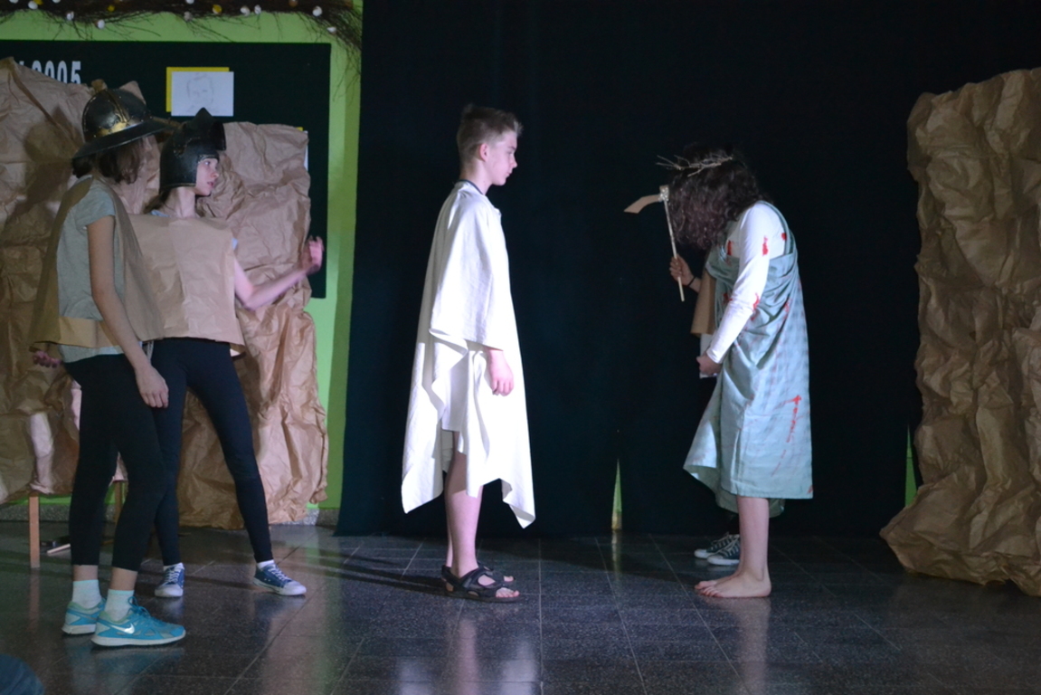 W Wielki Wtorek gościliśmy w naszej szkole uczniów z Zespołu Szkół w Redkowicach. Uczniowie Ci, pod kierunkiem Pani katechetki Joanny Rybickiej przygotowali Misterium Męki Pańskiej. Dziękujemy bardzo naszym kolegom i koleżankom oraz pani katechetce za wprowadzenie nas w atmosferę Triduum Paschalnego. Wszyscy w skupieniu słuchaliśmy słów i muzyki . która przepełniała mury naszej szkoły.