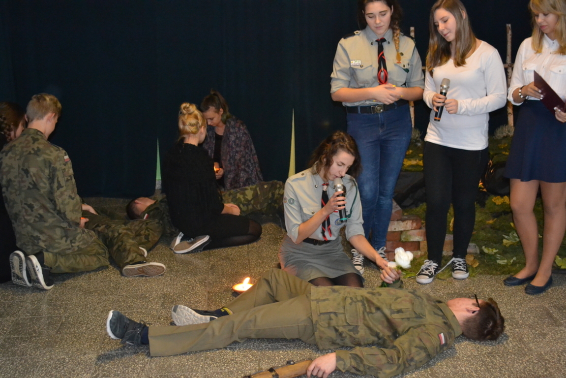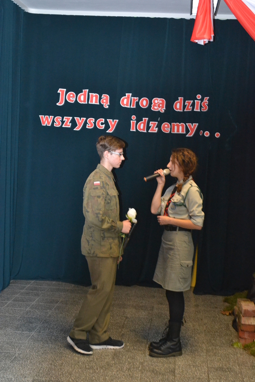 Występujący uczniowie zaprezentowali się w strojach wojskowych i harcerskich. Część artystyczną wzbogaciły zaśpiewane przez uczniów pieśni patriotyczne.