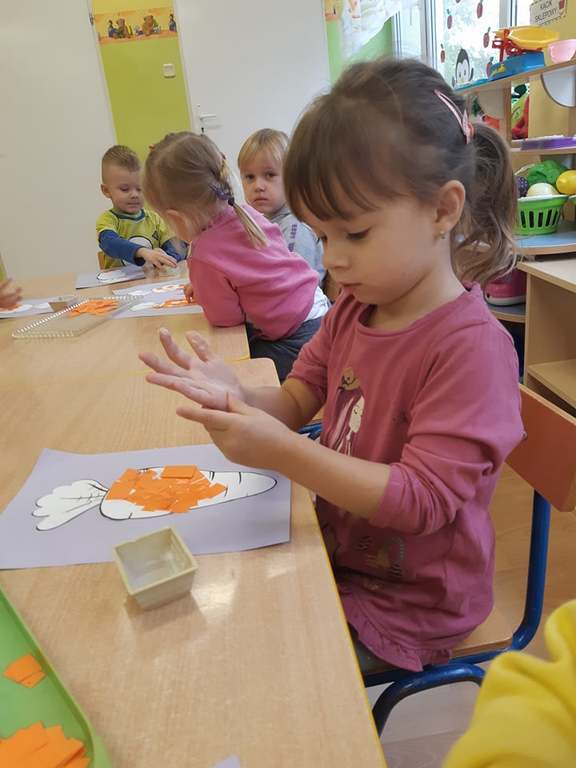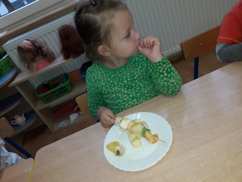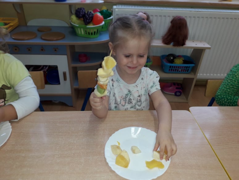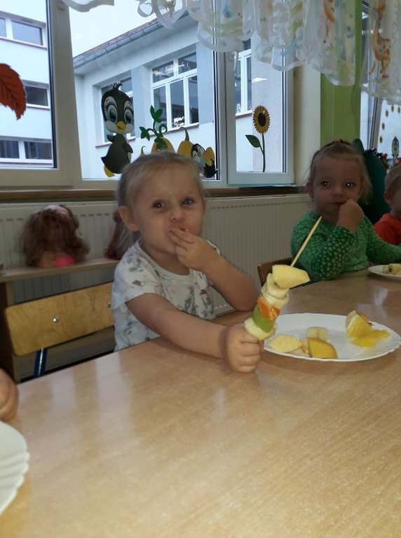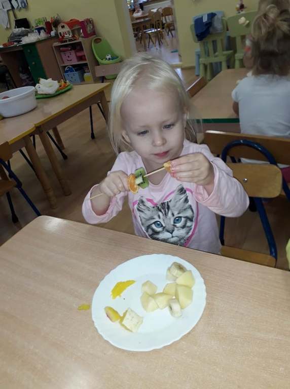 Cóż to były za tygodnie... Tak wiele się działo w grupie maluszków. Dzieci poznawały nazwy owoców i warzyw. Wykonały mnóstwo prac, w rezultacie czego powstała piękna wystawa ,,na straganie". Pingwinki poznawały smaki owoców, wykonując najpierw zdrowe szaszłyki, z owoców, które same przyniosły do przedszkola. W tych tygodniach także po raz pierwszy dzieci udały się na sale gimnastyczną, gdzie mogły się wyszaleć, bo przecież gimnastyka to ważna sprawa!