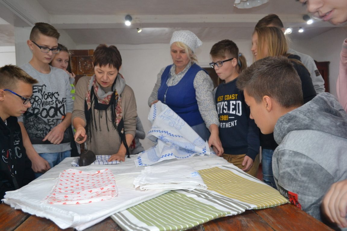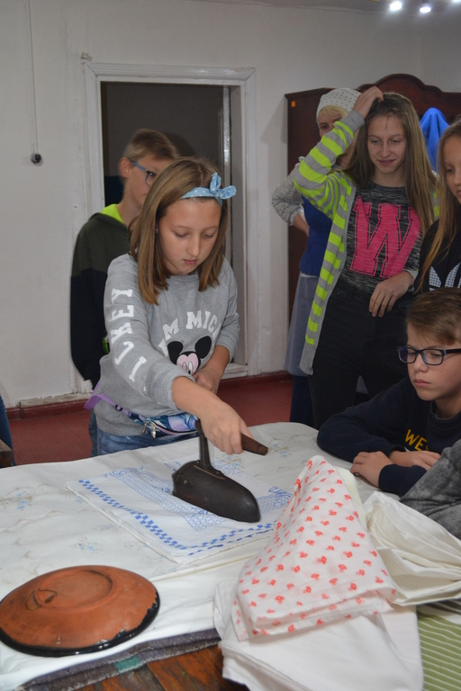 3 października 2018 r. uczniowie klas II - V w ramach realizacji lekcji języka kaszubskiego wybrali się do Muzeum Wsi Słowińskiej w Klukach, aby uczestniczyć w zajęciach warsztatowych poświęconych życiu codziennemu na Kaszubach. Jedna grupa brała udział w warsztatach na temat ,,W domu i zagrodzie, czyli codzienne życie na wsi”. Dzieci uczestniczyły w przygotowaniu posiłku - gotowanie ziemniaków w koszulkach. Poznały, jak bardzo różniły się od współczesnych, ile wysiłku kosztowały dawne prace codzienne – mogły prasować żelazkiem z tzw. duszą, prać ręcznie w balii