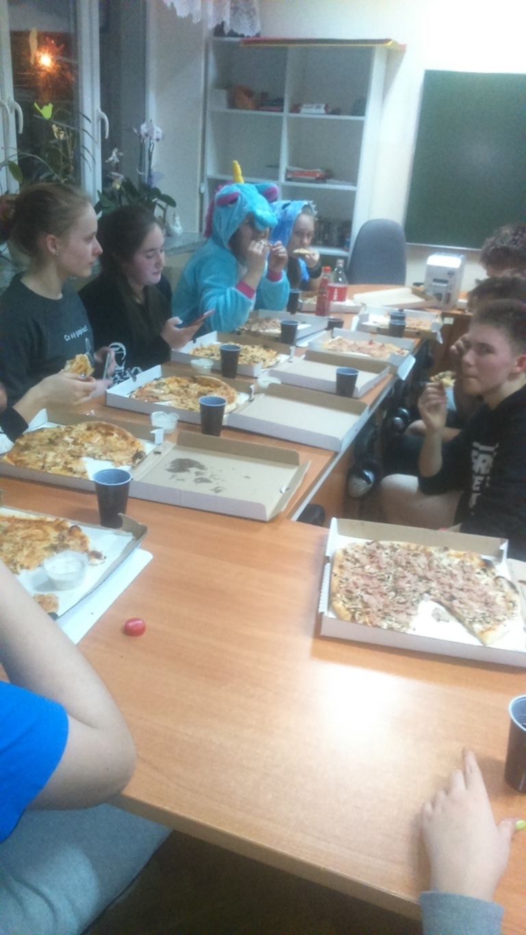Noc z 24/25 marca 2017r. klasa II B spędziła w szkole. Po klasowym ognisku z wychowawcą i opiekunami odbyły się jeszcze klasowe rozgrywki na sali sportowej. W programie był jeszcze maraton filmowy i wspólna kolacja. Chętni uczniowie, wraz z absolwentami szkoły - Mateuszem Rybarczykiem i Mariuszem Szadkowskim, malowali klasopracownię nr 19. Wiosenne kolory okazały się strzałem w 10! Stare szafki zyskały nowe życie, a klasa II B radość i satysfakcję! Uczniowie z całego serca dziękują opiekunom: p.Barbarze Palczewskiej p.Adrianie Nowickiej oraz p. Michałowi Żmija za zaangażowanie!!!Oto zdjęcia!