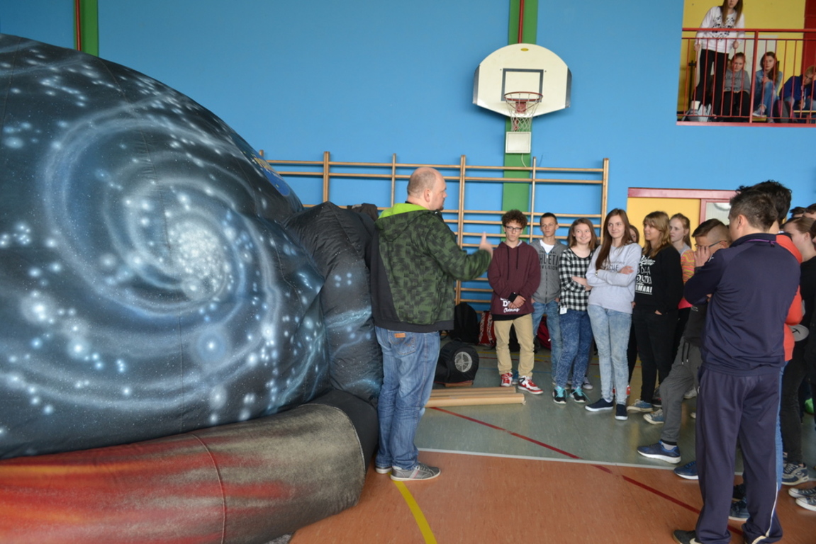 21 kwietnia uczniowie Zespołu Szkół w Łebieniu mieli okazję skorzystać z zajęć zorganizowanych w objazdowym „Astroparku”. Na sali gimnastycznej stanęła wielka kopuła, pod którą odbyło się wiele seansów astronomicznych. Uczniowie mieli okazję, by poznać wiele ciekawostek z astronomii, utrwalić wiedzę o ruchu obrotowym i obiegowym Ziemi , skąd się biorą zorze polarne. Najciekawsze jednak było poznanie z bliska planet takich jak Wenus, Mars, Jowisz i Saturn, obserwacja spadających meteorów i Czarnej Dziury, odszukanie najciekawszych gwiazdozbiorów północnej części nieba oraz największej spośród gwiazd tego regionu – Gwiazdy Polarnej. Uczniowie dowiedzieli się też, dlaczego gwiazdy migoczą i mają różne barwy , a także o tym, że teleskopy, za pomocą których ludzie obserwują gwiazdy, to tak naprawdę wehikuły czasu, które pokazują ich wygląd sprzed milionów lat. Uczniowie obejrzeli także aktualny obraz nieba.