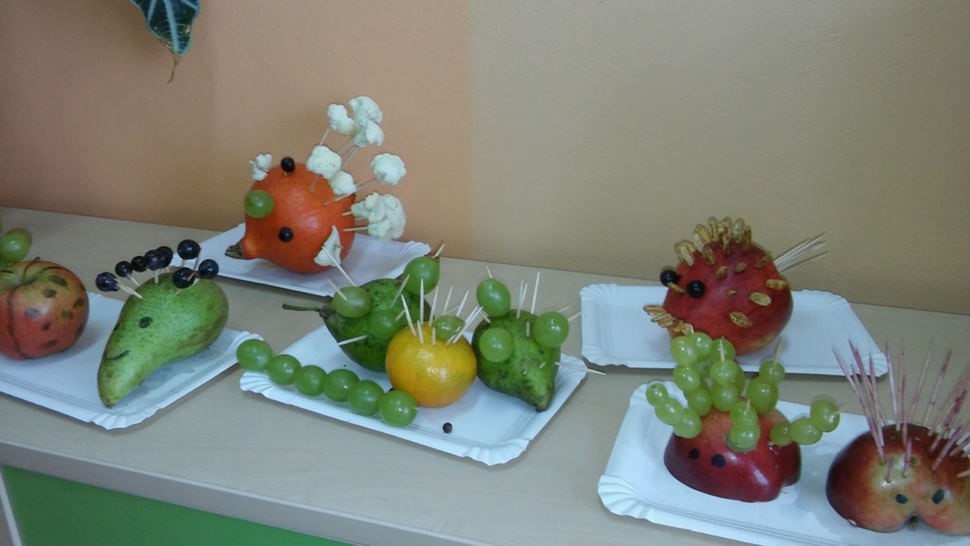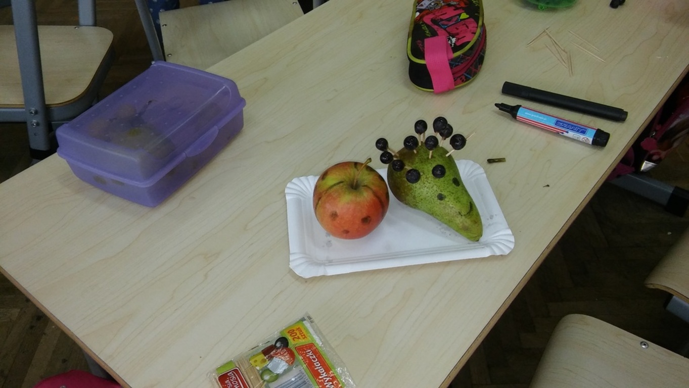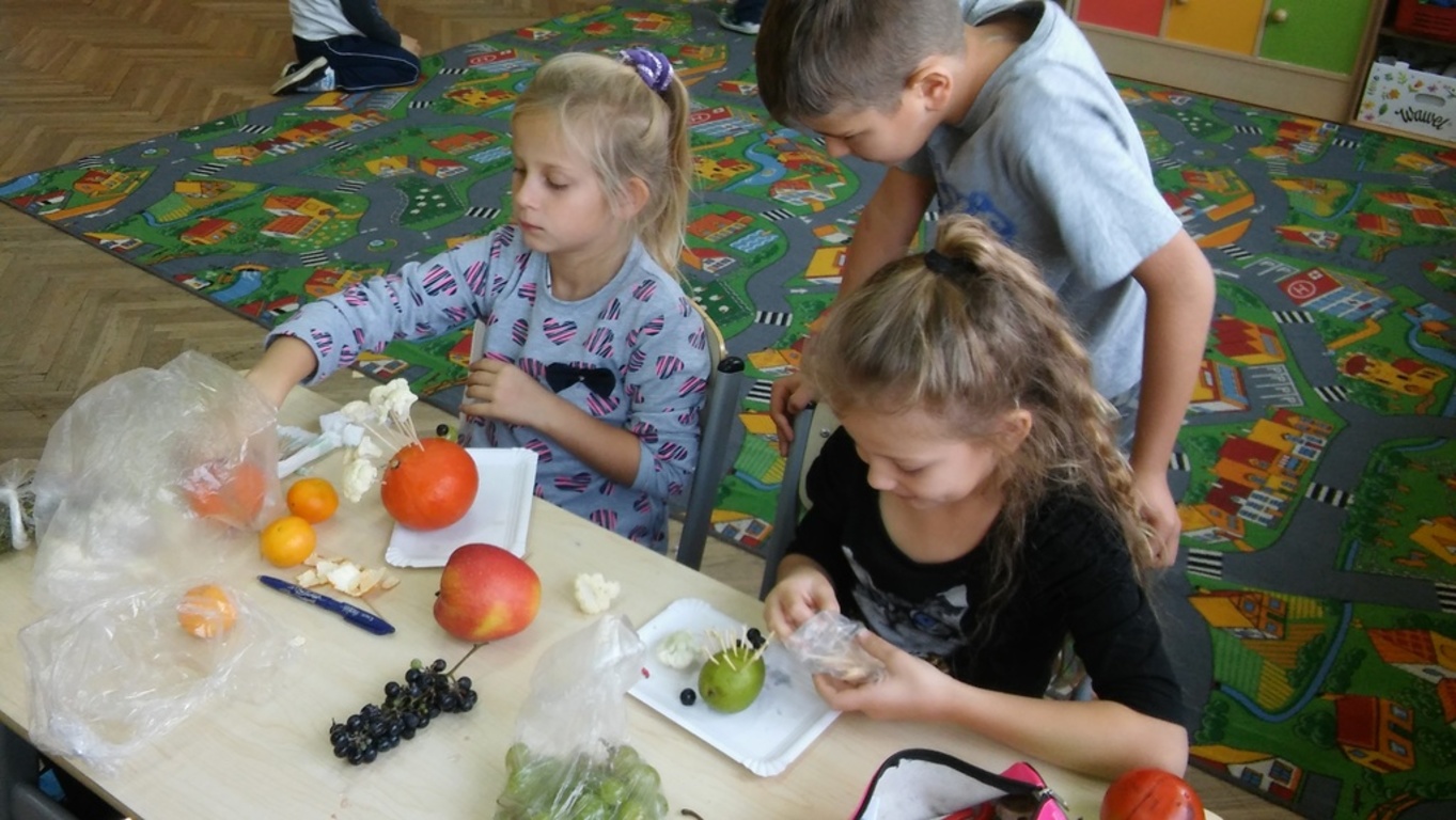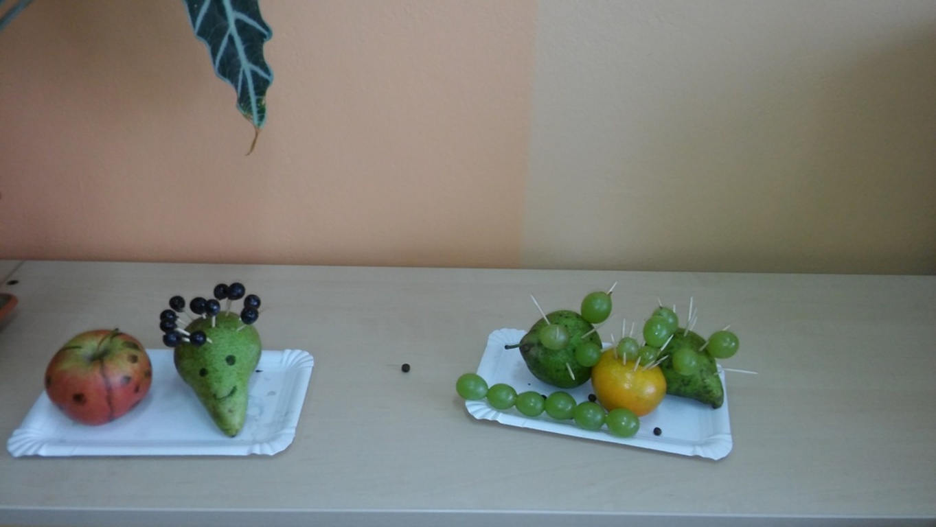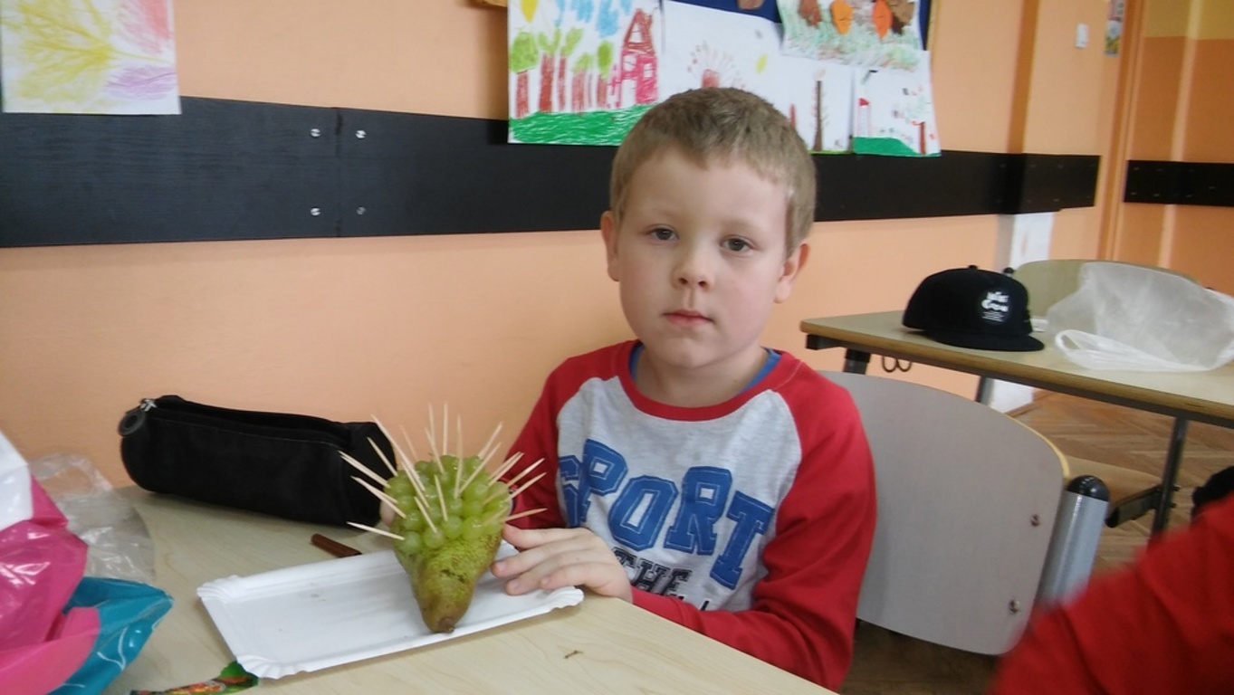 Jesień, to nie tylko piękne kolorowe liście, grzyby, kasztany i żołędzie; jesień to również moc owoców i warzyw. Na ostatnich zajęciach technicznych, uczniowie z klasy II a zrobiły z owoców i warzyw śmieszne i kolorowe "zwierzaki - cudaki". Przypomnieliśmy sobie przy okazji jak wiele jest witamin w owocach i warzywach oraz jak ważne jest spożywanie ich właśnie w okresie jesiennym.