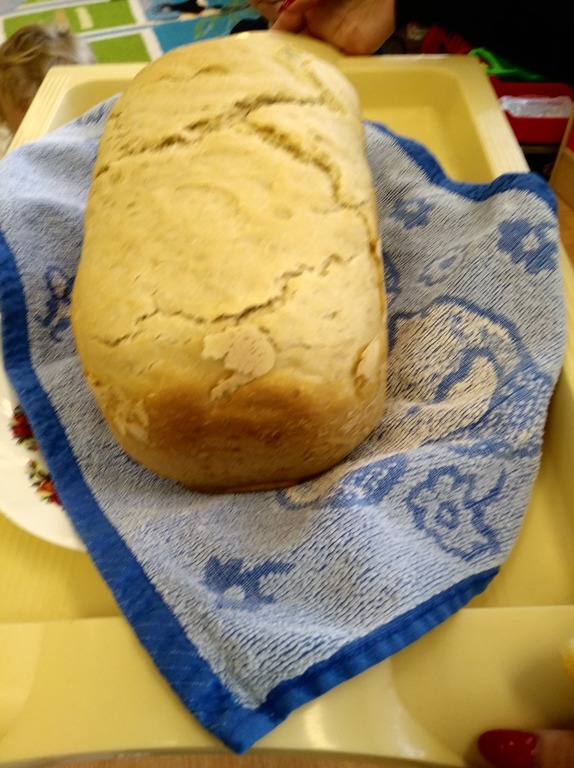 Inauguracją całego zajęcia był własnoręczny wypiek chleba pod opieką naszego gościa pani Elżbiety Laskiewicz. Starannie połączyliśmy wszystkie składniki i z niecierpliwością czekaliśmy cztery godziny, by móc skosztować własnego wypieku.