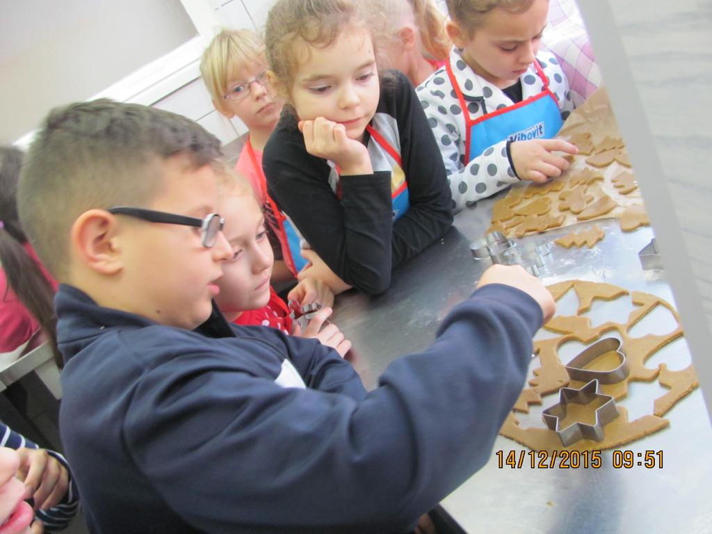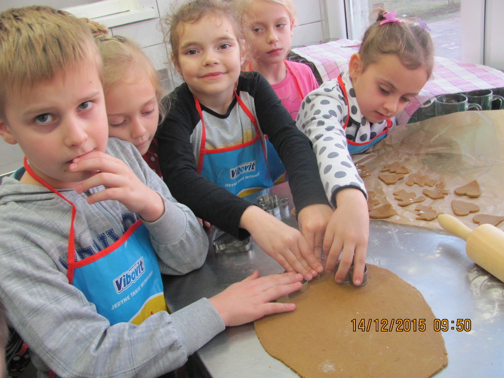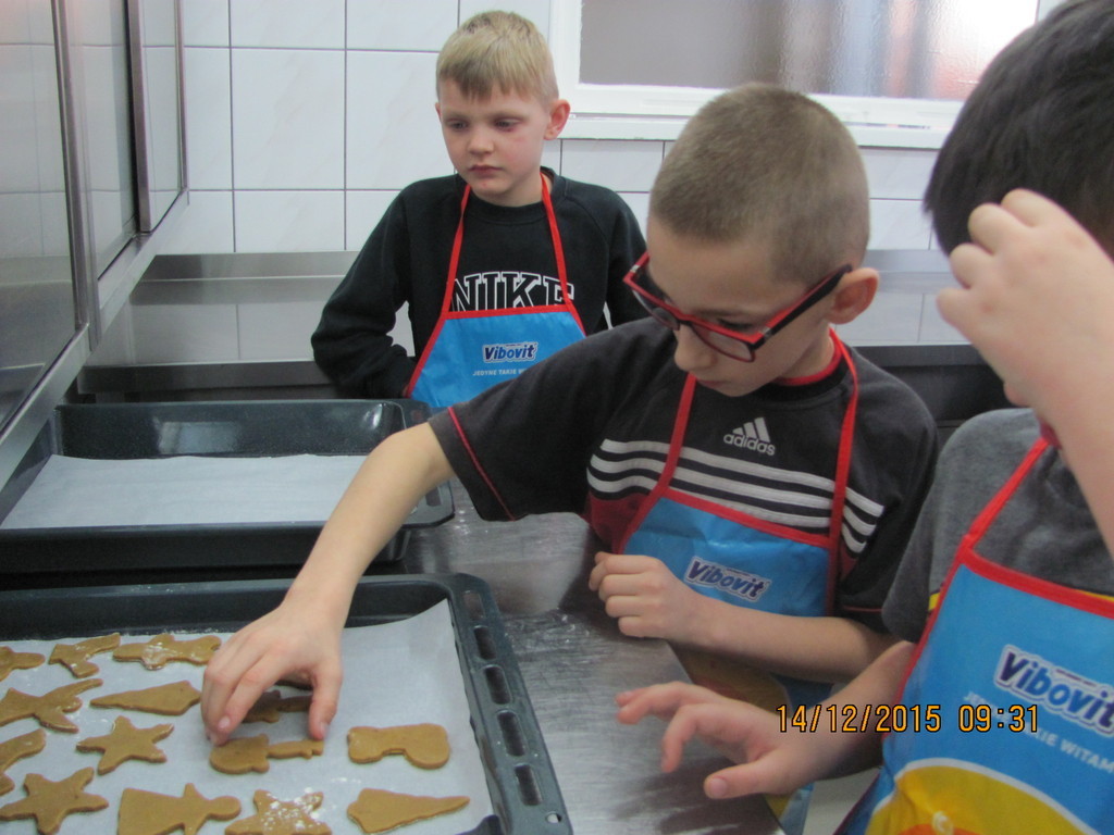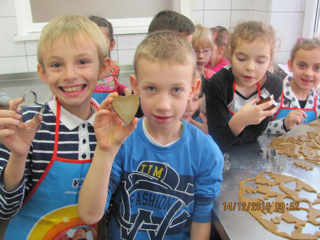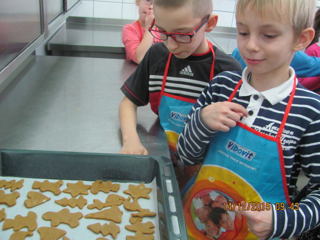 Uczniowie klasy II a upiekli dziś przepyszne pierniki. Poznając sposób przygotowania pierników świetnie wszyscy się bawili, bo przecież chodzi o zgodną współpracę zarówno w zabawie, jak i w nauce. Dzieci najbardziej nie mogły doczekać się, gdy pierniki ostygną by mogli je schrupać. Na szczęście upiekli dość sporo, bo zabrali jeszcze do domów pięknie pakując w cylofan.