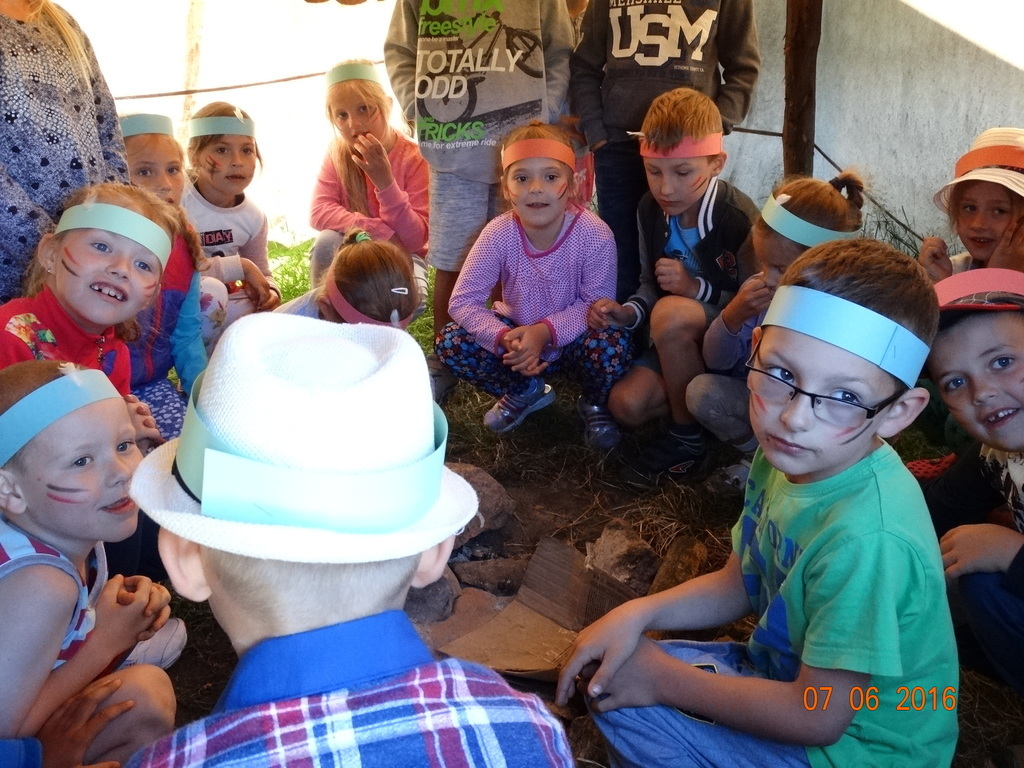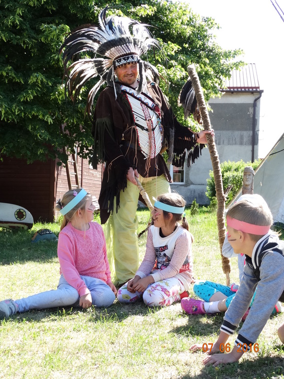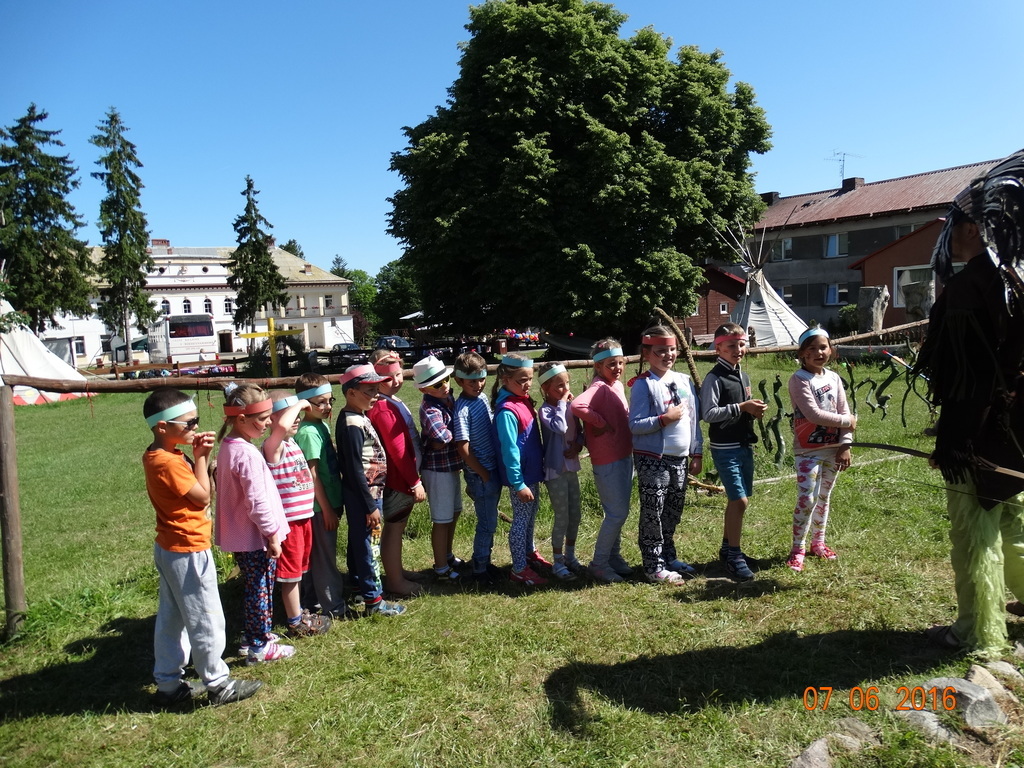7 czerwca 2016r., dzieci z klasy 1a i 1b wybrały się na wycieczkę do Runowa. Odwiedziły wioskę Szoszonów, w której to same zamieniły się w Indian. Wielki wódz "Siedzący Byk" nadał każdemu dziecku nowe imię, nauczył strzelać z łuku oraz zapoznał ze zwyczajami Indian. Zabawa była pełna śmiesznych przyśpiewek i żartów. Mali Indianie grali też na specjalnych instrumentach, jeździli konno oraz bryczką. Dzieci wróciły do szkoły pełne wrażeń i już czekają na wycieczki jakie odbędą się w klasie drugiej.