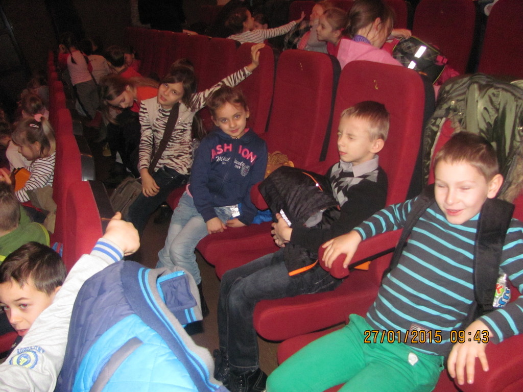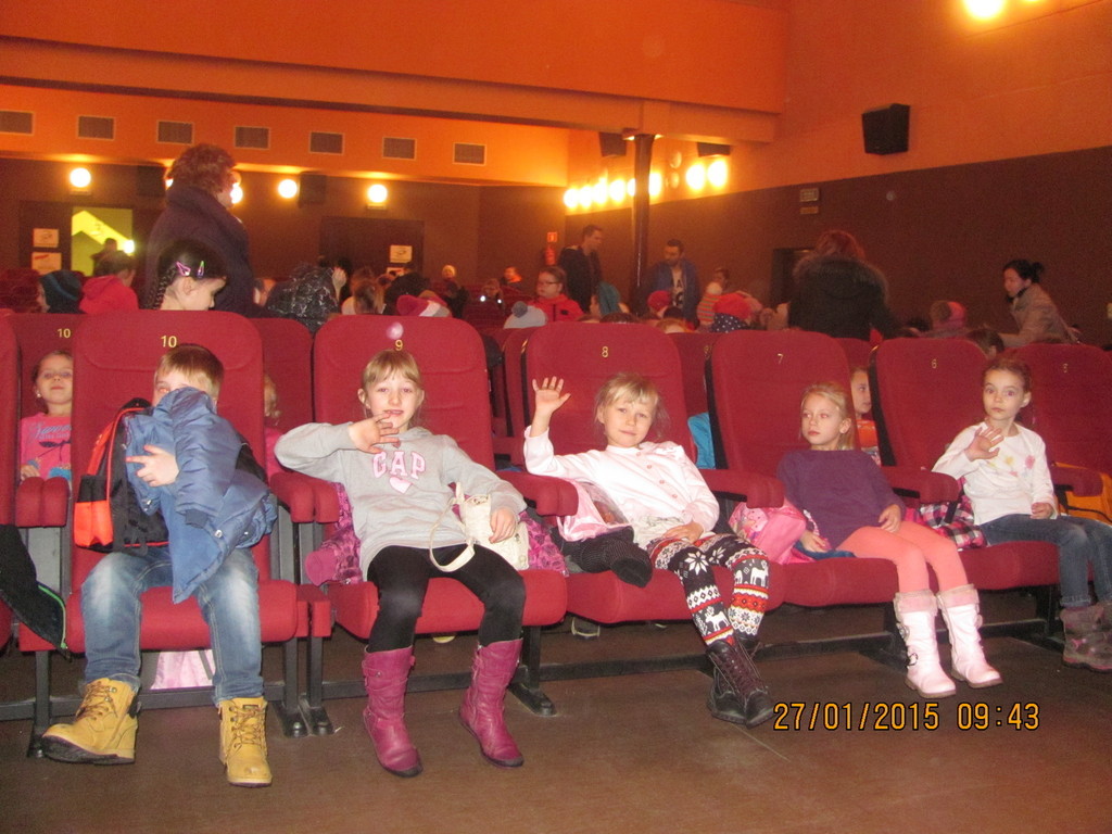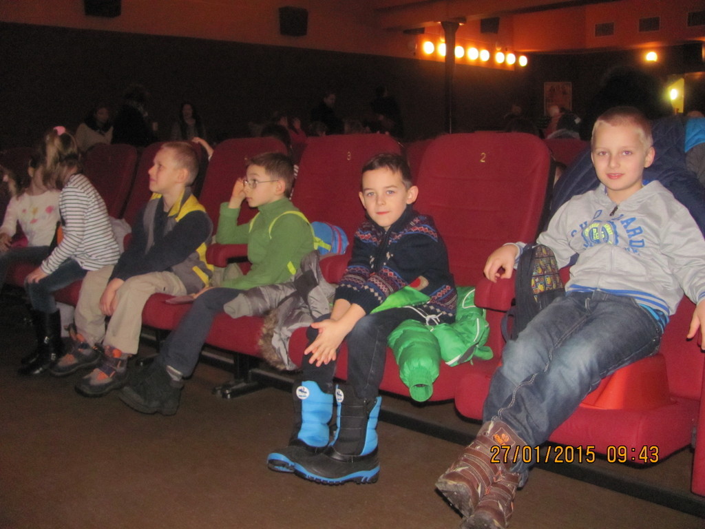Dnia 27 stycznia pierwszaki odwiedziły lęborskie kino "Fregata". Najpierw uczestniczyły w prelekcji teatralno-filmowej, która przybliżyła dzieciom sposób, w jaki zrobiony i nagrany zostaje film animowany. Następnie obejrzeli projekcję pełnometrażowego filmu pt. "Pies i kot". Dzieci z wielkim zainteresowaniem słuchały, również bardzo podobała się im bajka. Wróciły zadowolone, choć nieco zmęczone:)