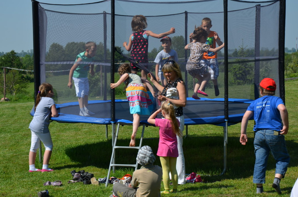 Korzystając z pięknej majowej pogody ( 25.05.) oraz zaproszenia Państwa Kamili i Radosława Gierszewskich , uczniowie klasy I bawili się na podwórku swojej koleżanki Oliwii. Miały do dyspozycji różne atrakcje: skoki na trampolinie, huśtanie na różnych huśtawkach, skoki na piłce czy gra w piłkę. Gospodarze zadbali o napoje dla spragnionych „skoczków”. Na pożegnanie wszyscy otrzymali także orzeźwiające lody. Dzieci bawiły się wspaniale. Dziękujemy bardzo za zaproszenie.