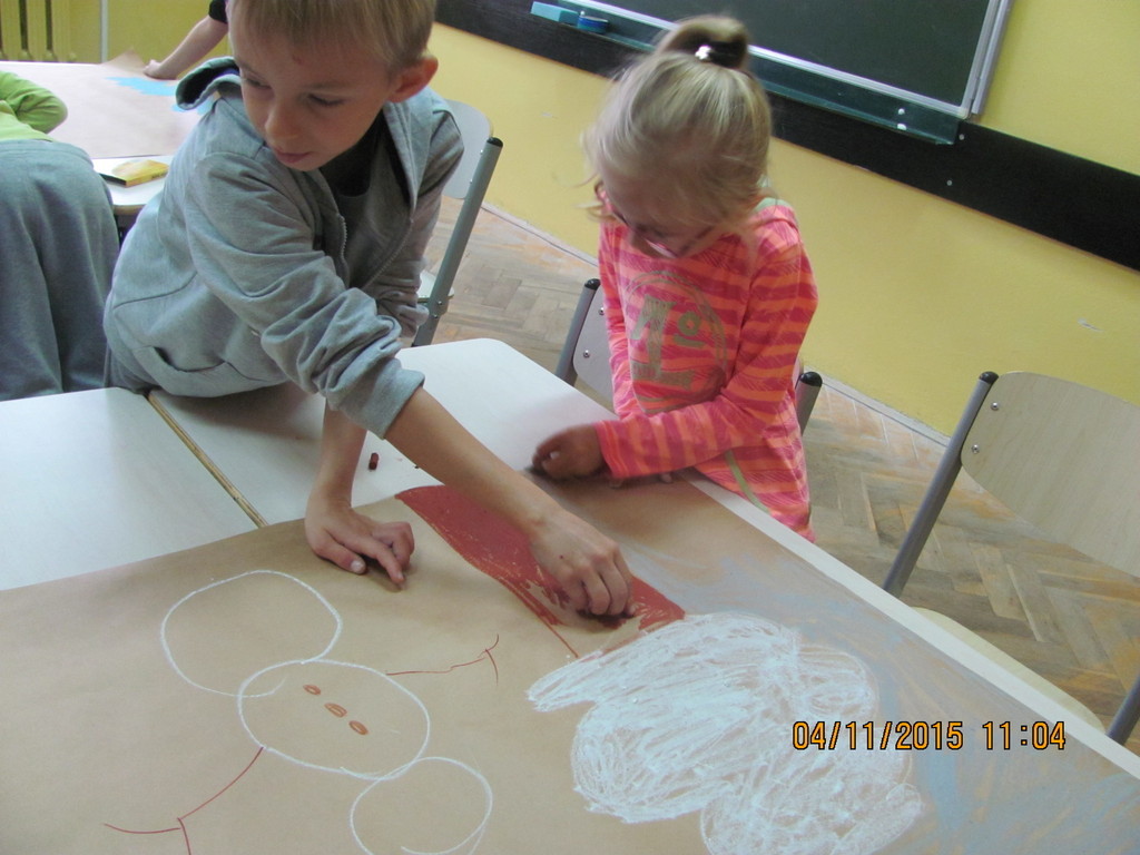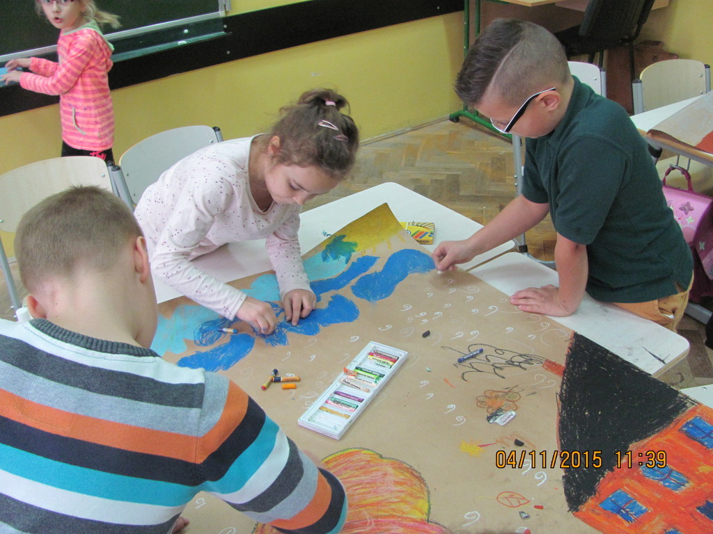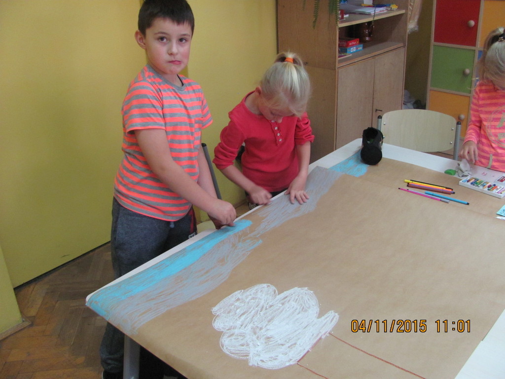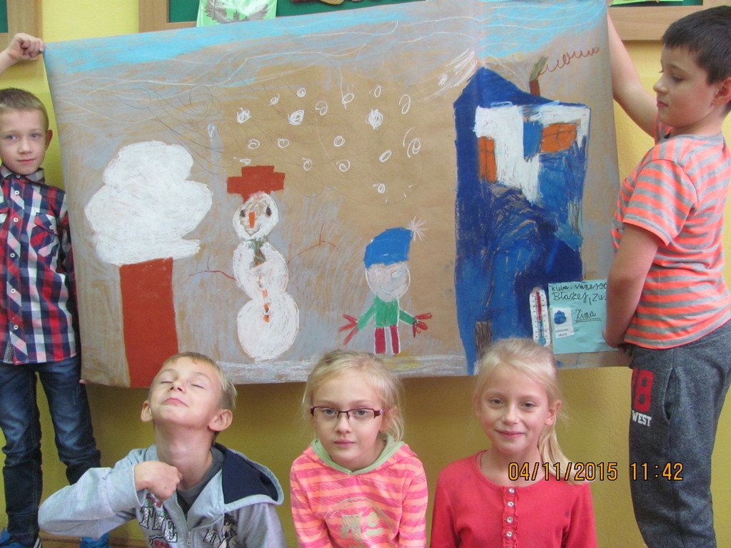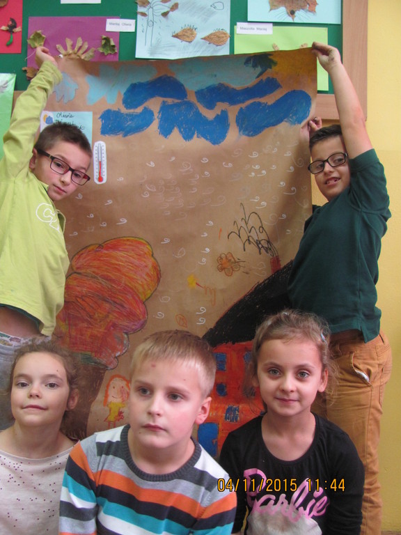 Na dzisiejszych zajęciach uczniowie klasy II a pracowali w grupach. Zadaniem każdej z nich było zobrazowanie wylosowanych zjawisk atmosferycznych w wybranej porze roku, a także określenie temperatury powietrza, siły wiatru oraz poziomu opadów. Po zakończonej pracy uczniowie prezentowali efekty swojej pracy, które były bardzo owocne.