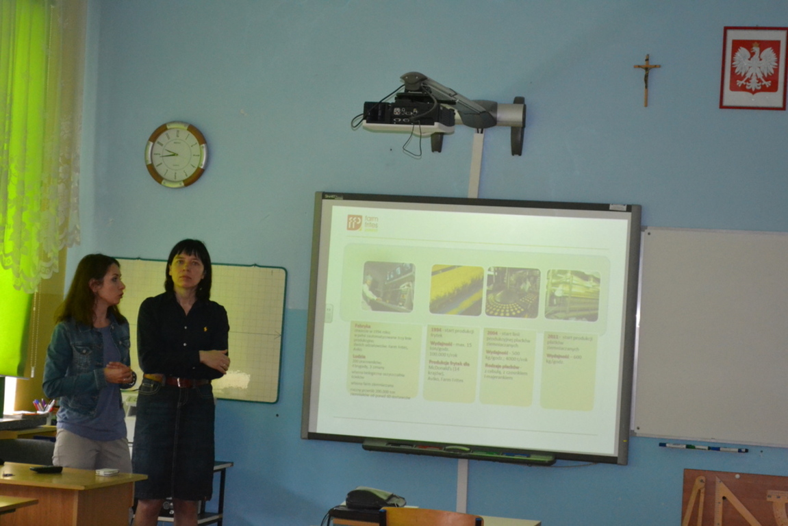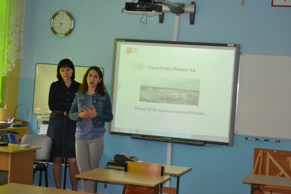 19 czerwca naszą szkołę odwiedzili przedstawiciele Fabryki Frytek Farm Frites. Panie z oddziału HR przedstawiły strukturę zatrudnienia firmy, omówiły ścieżki kariery edukacyjnej i zawodowej pracowników, wskazały młodzieży preferowane kierunki edukacyjne rozwoju. Spotkanie było bardzo ciekawe.