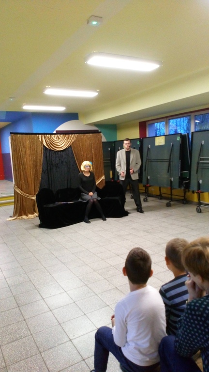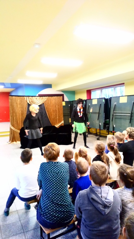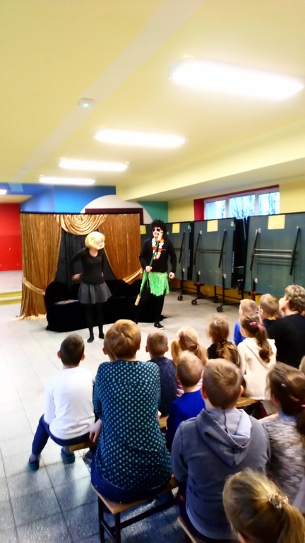 W dniu 4 grudnia 2018r. przedszkolaki i uczniowie klas I – III SP obejrzeli przedstawienie pt. : „Jestem przyjacielem ludzi” w wykonaniu Teatru Kurtyna z Krakowa.