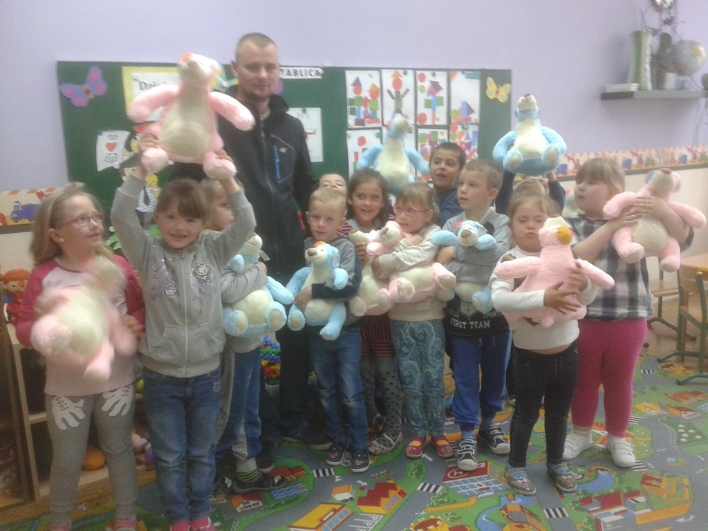 Dzieci z Przedszkola w Łebieniu bardzo dziękują Panu Arkadiuszowi Maślińskiemu za otrzymane w prezencie misie z okazji Dnia Dziecka. Niespodzianka ta wywołała wiele radości i uśmiechu na twarzach przedszkolaków. Jeszcze raz bardzo dziękujemy.