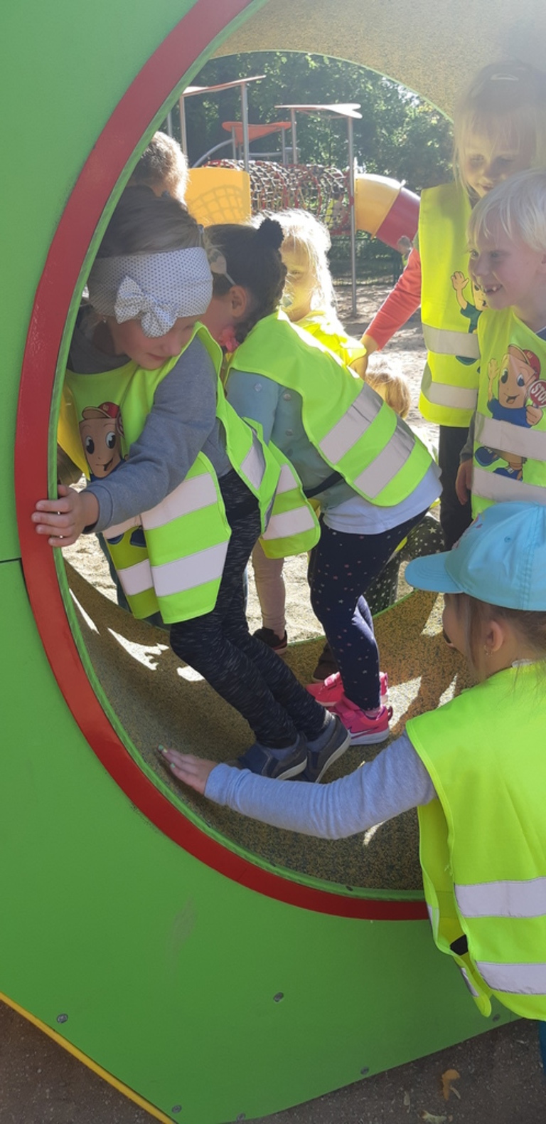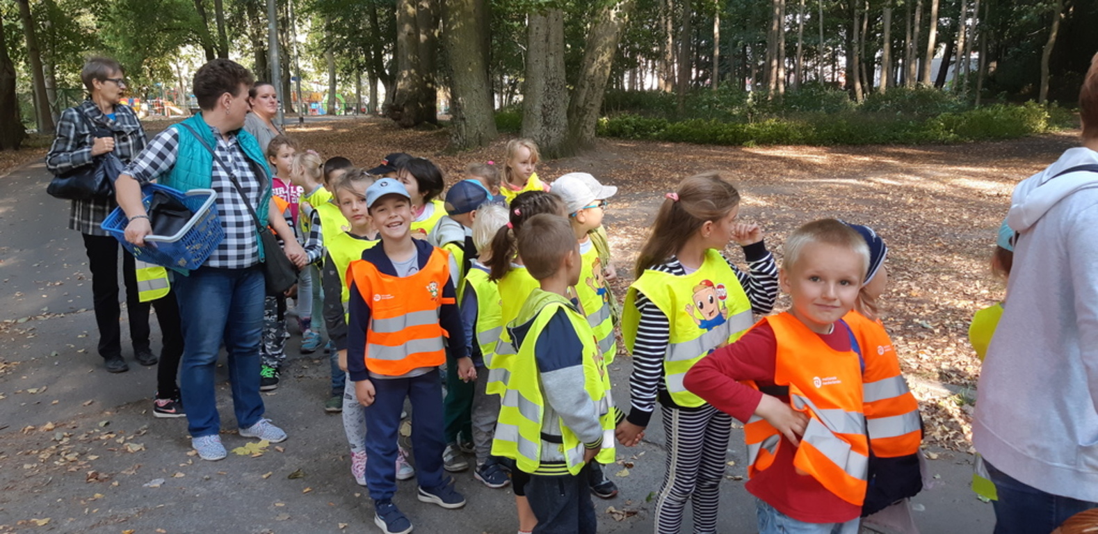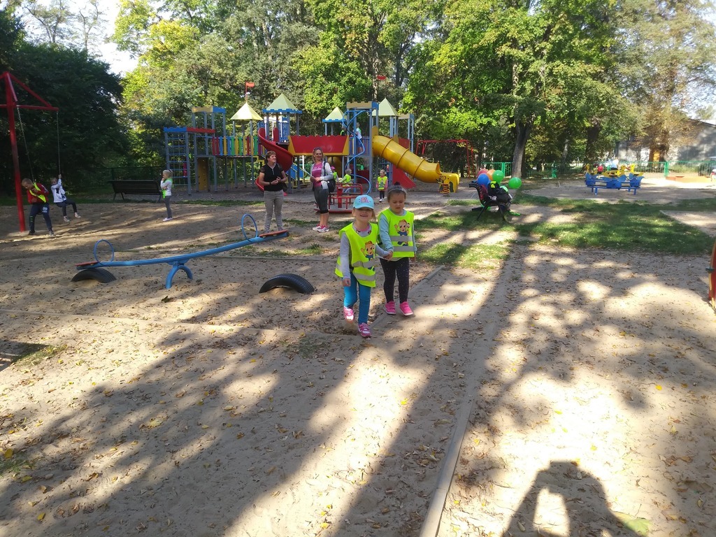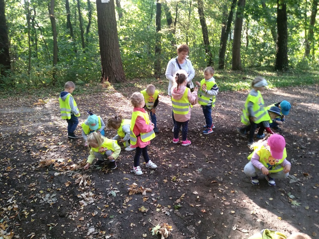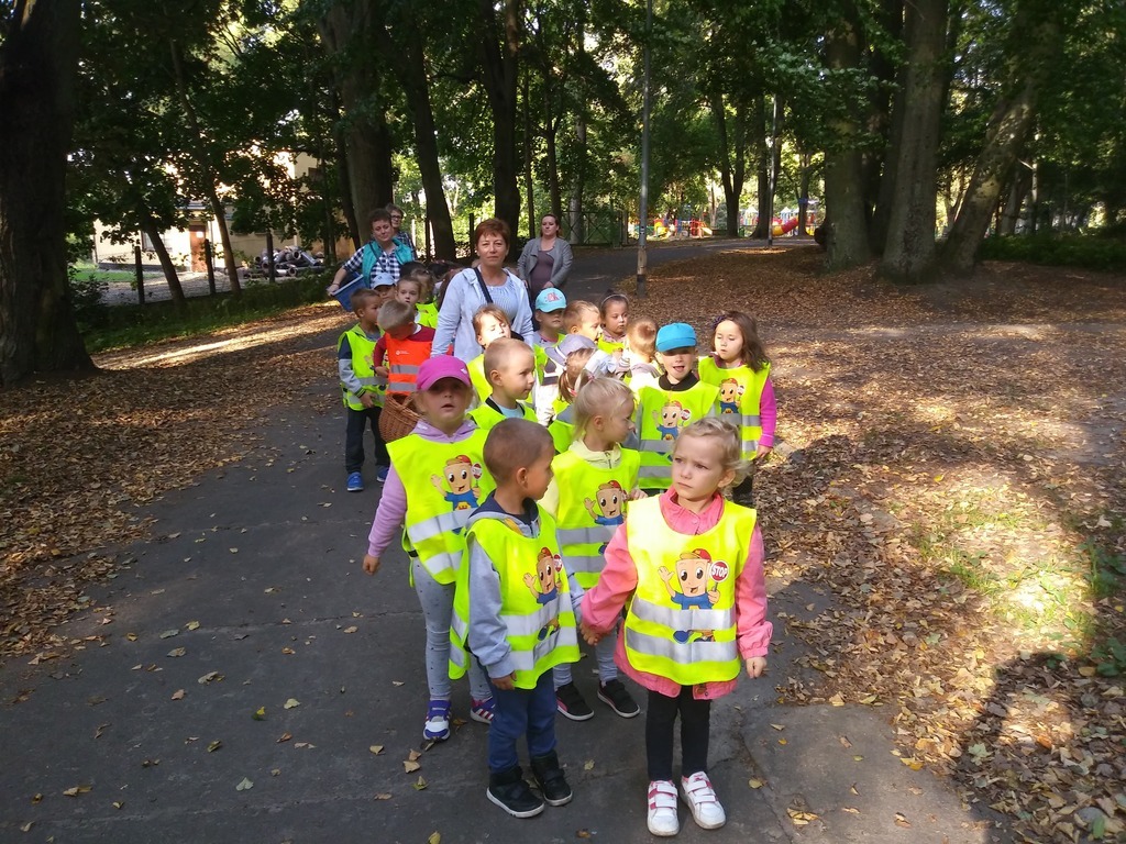 Dnia 21.09.2018 r. grupa Puchatków oraz Biedronek wybrała się na jesienny spacer po parku im. Bolesława Chrobrego w Lęborku. Dzieci miały okazję nazywać napotkane drzewa oraz zbierać kasztany, żołędzie, kolorowe liście i szyszki, które niebawem ozdobią nasze kąciki przyrody. Pod koniec dość długiego spacerku przedszkolaki mogły również pobawić się wspólnie z innym dziećmi na placu zabaw.