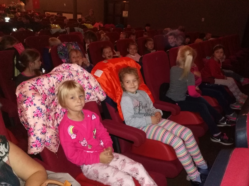 Dnia 18.09. przedszkolaki z grupy "Pszczółki" oraz "Jeżyki" wybrały się do lęborskiego kina "Fregata", gdzie miały okazje obejrzeć wartościowe animacje, take jak: "Warszawska Syrenka", "Wielkie, małe gwiazdy" , "Wyspa skarbów" oraz "Wielke mycie". Po seansach aktywnie uczestnczyły w konkursach. Dzieci, które najuważniej oglądały bajki zostały nagrodzone małymi niespodziankami.