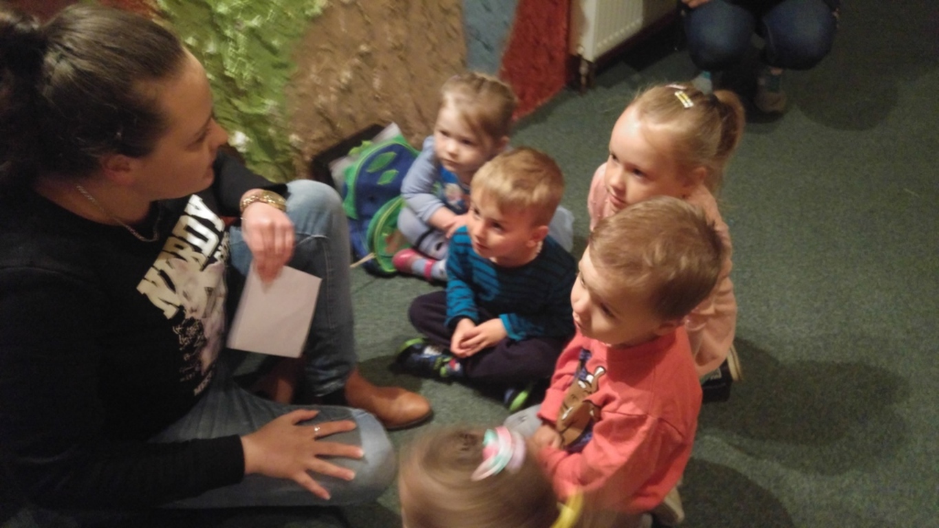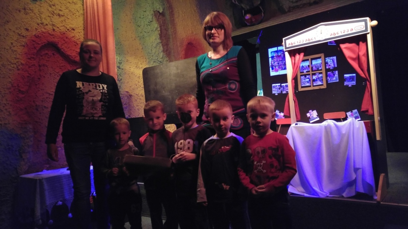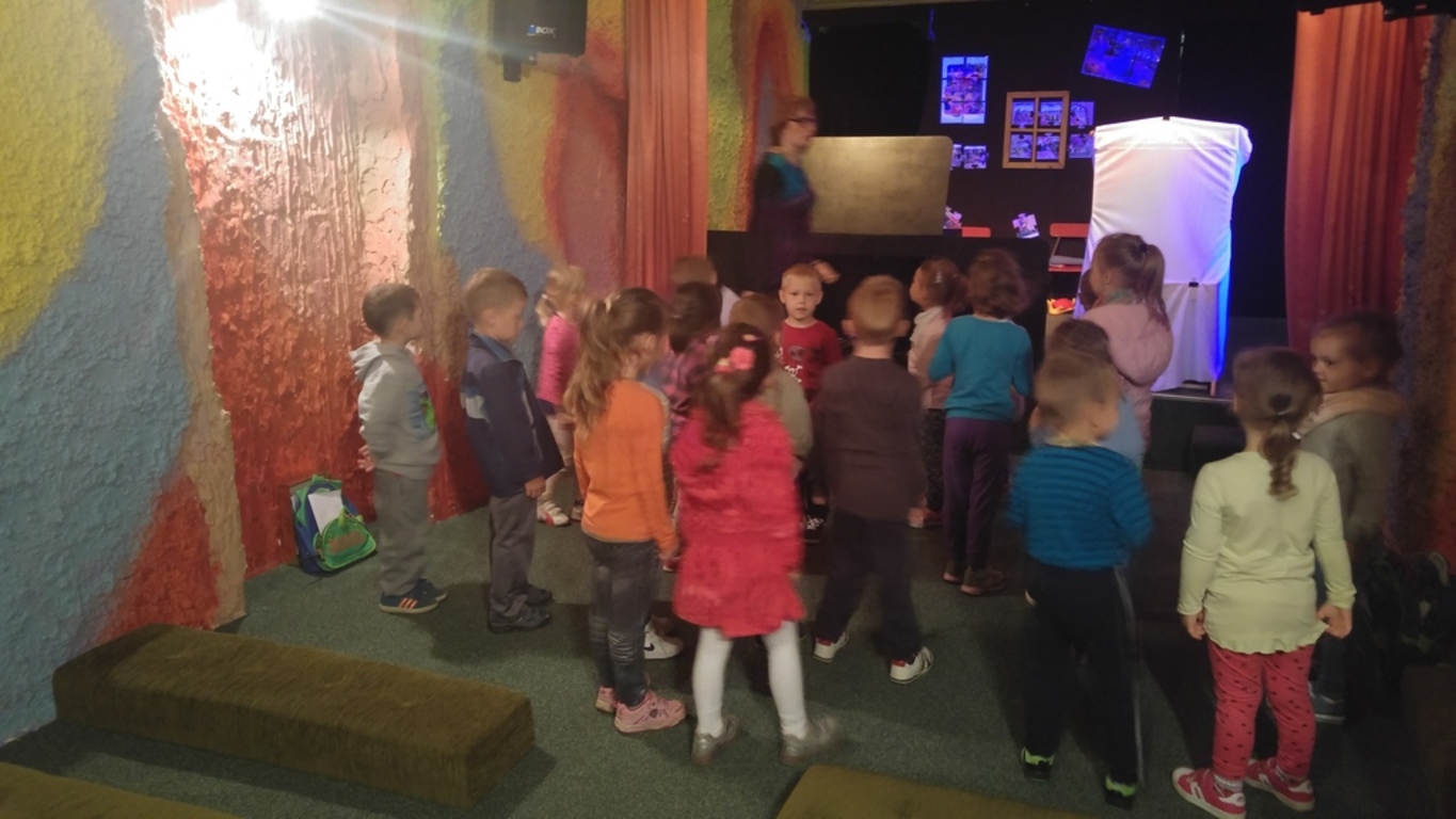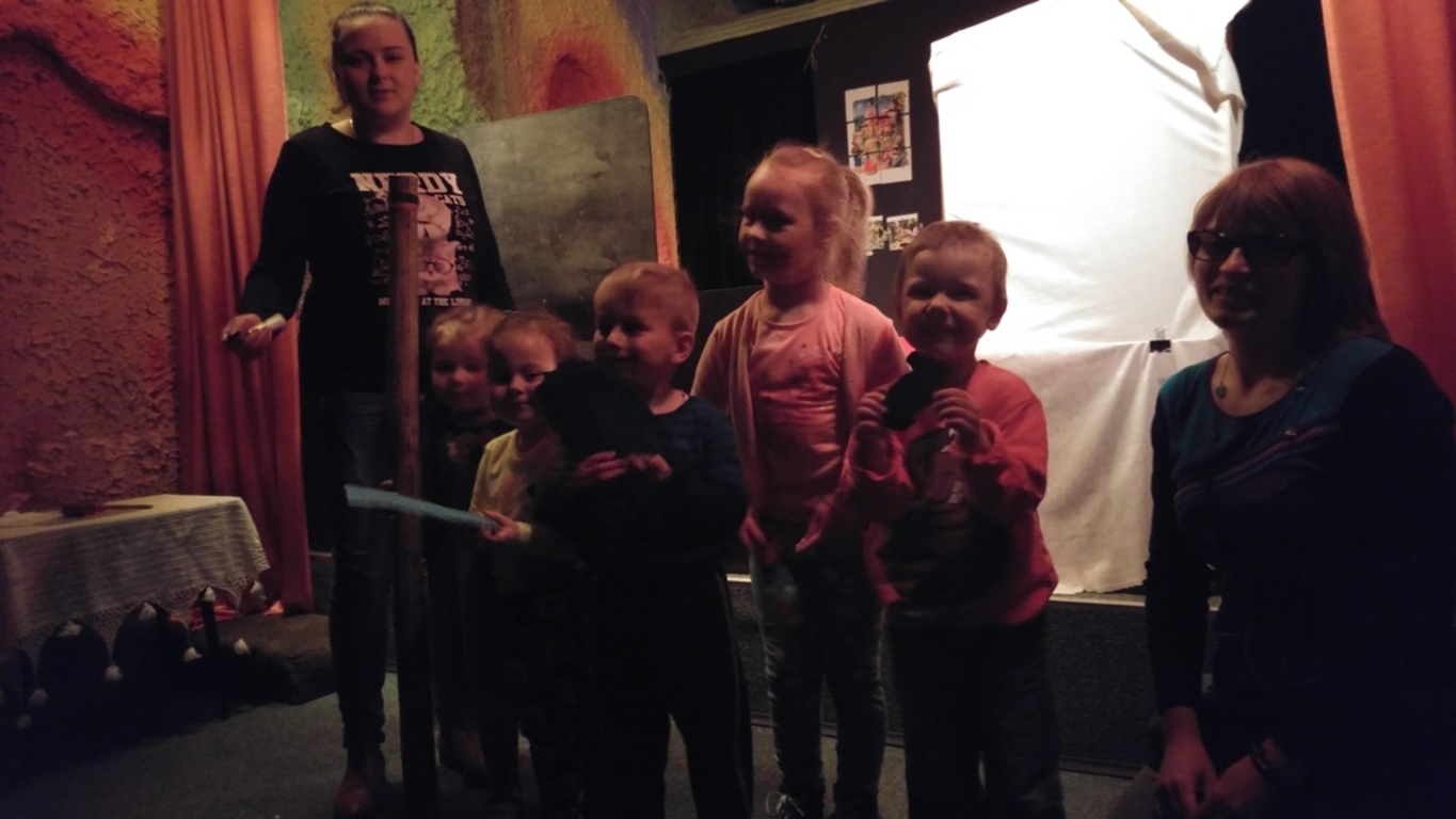 18.05.2016 grupa najmłodszych przedszkolaków „Żabki” wybrała się na wycieczkę do Miejskiej Biblioteki Publicznej w Lęborku. Dzieci zostały zaproszone do „Jaskini Smoków”, gdzie wraz z panią Emilią zabawiły się w teatr. Miały możliwość zagrania w teatrze lalek, teatrze cieni, teatrze czarnym i teatrze obrazkowym. Podczas spotkania dzieci wykonały rekwizyty, które potem wykorzystały na scenie podczas przedstawienia.