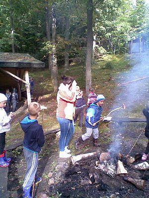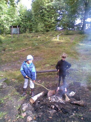 W dniu 25 września klasy pierwsza i druga wybrały się na przyrodniczą wycieczkę do lasu w Leśnicach. W pięknych promieniach słońca podziwialiśmy przyrodę w wczesnojesiennej szacie. Wędrując wytyczoną ścieżką ekologiczną dzieci starały się dostrzec oznaki przybycia Pani Jesieni. W środku lasu czekała ich miła niespodzianka. Ognisko z kiełbaskami !! Po przepysznym posiłku jeszcze chwila zabawy na leśnej polanie i niestety powrót do szkoły. Szkoda, że tak krótko. Wrócimy tu za rok!!!!
