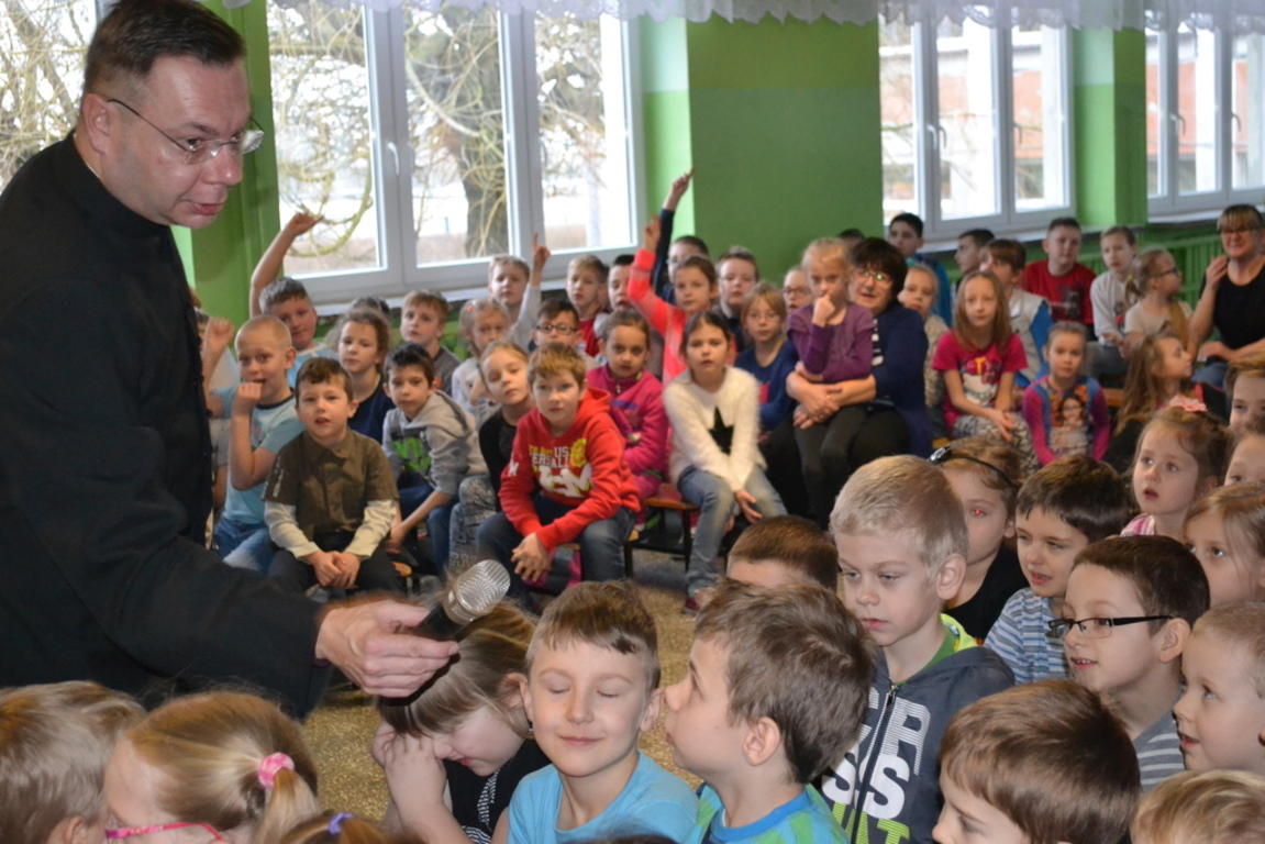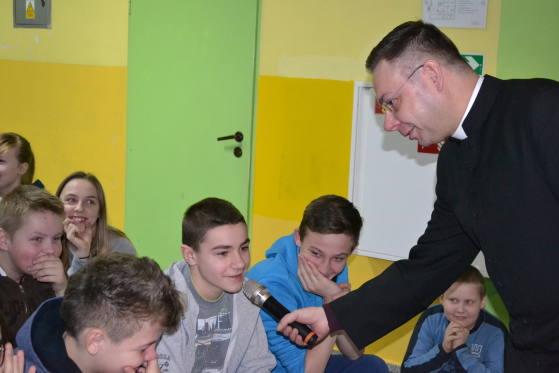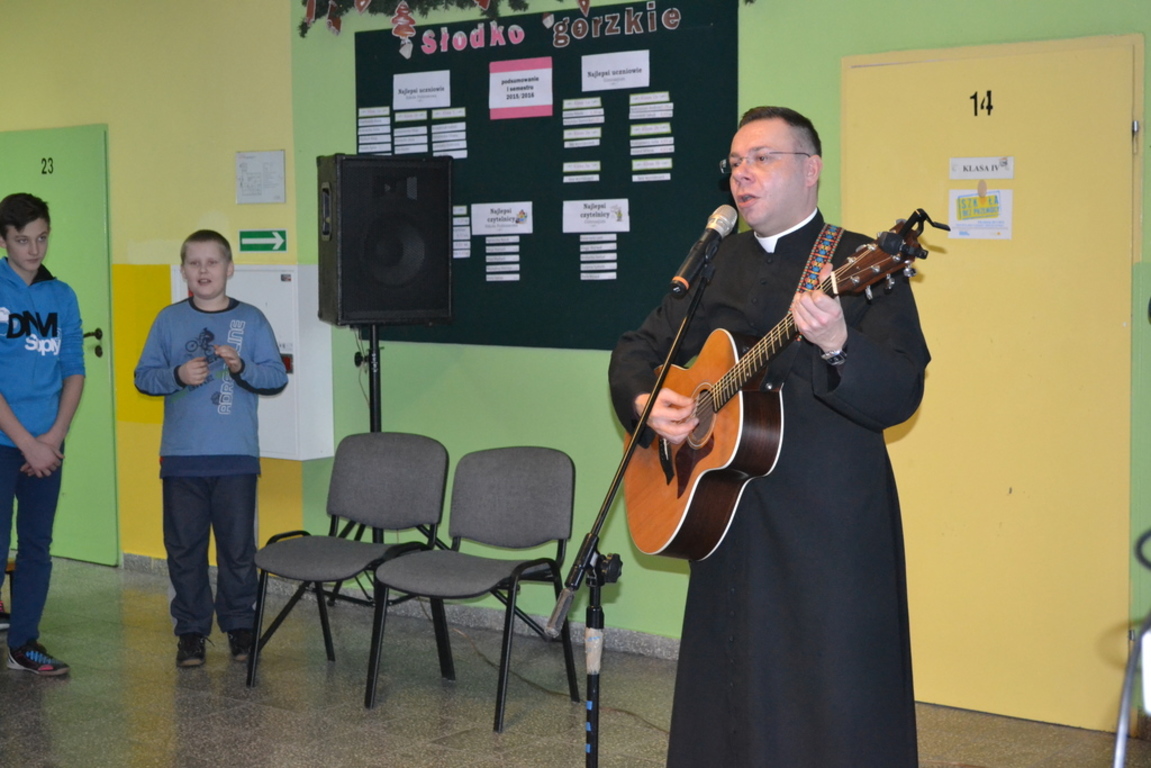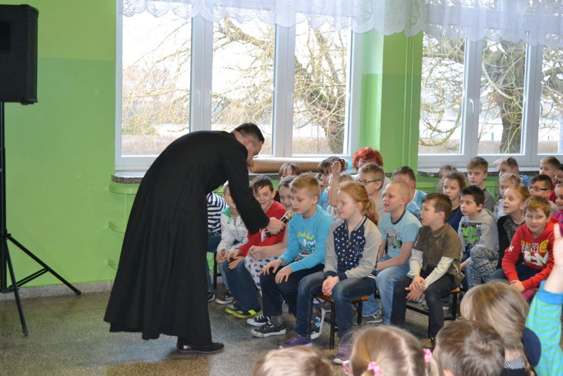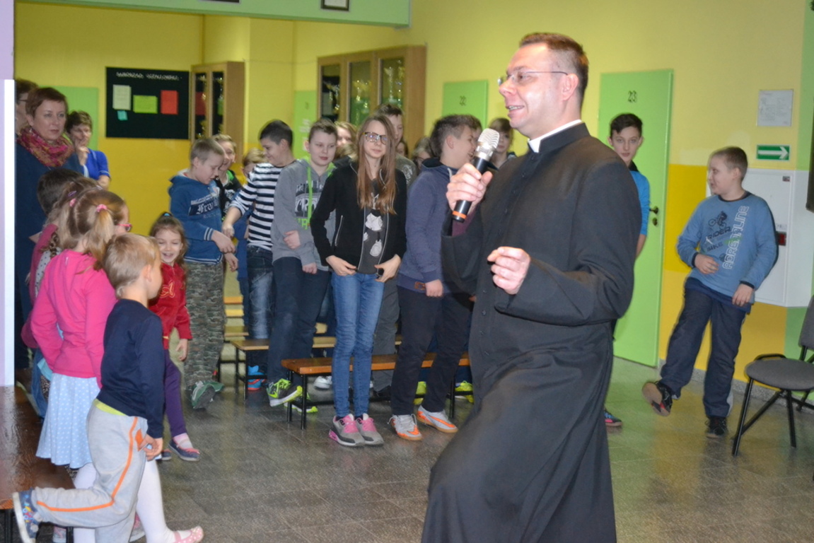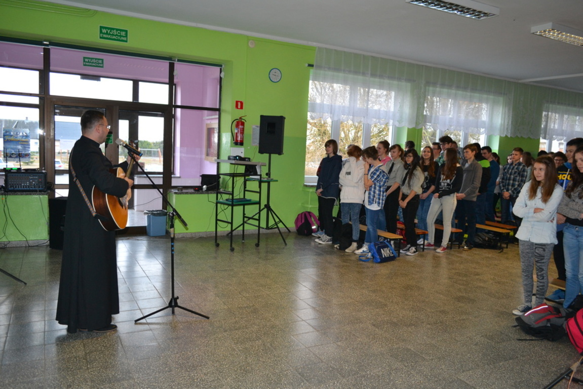 W dniach 11 – 12 lutego 2016 roku uczniowie Szkoły Podstawowej i Gimnazjum uczestniczyli w rekolekcjach wielkopostnych. Rekolekcje prowadził ks. Przemysław Krzyżanowski z Koronowa. Młodzież z zainteresowaniem słuchała rekolekcjonisty. Mądre kazania, ciekawe prezentacje i piękny śpiew z akompaniamentem gitary docenione zostały przez naszych uczniów, którzy bardzo dziękują Księdzu Przemysławowi Krzyżanowskiemu.