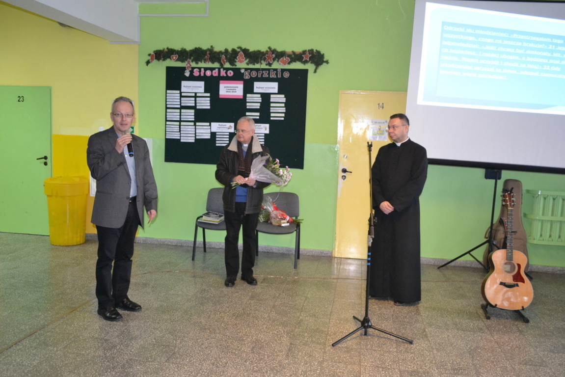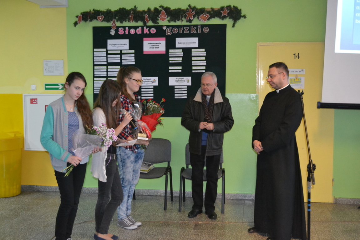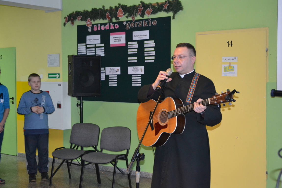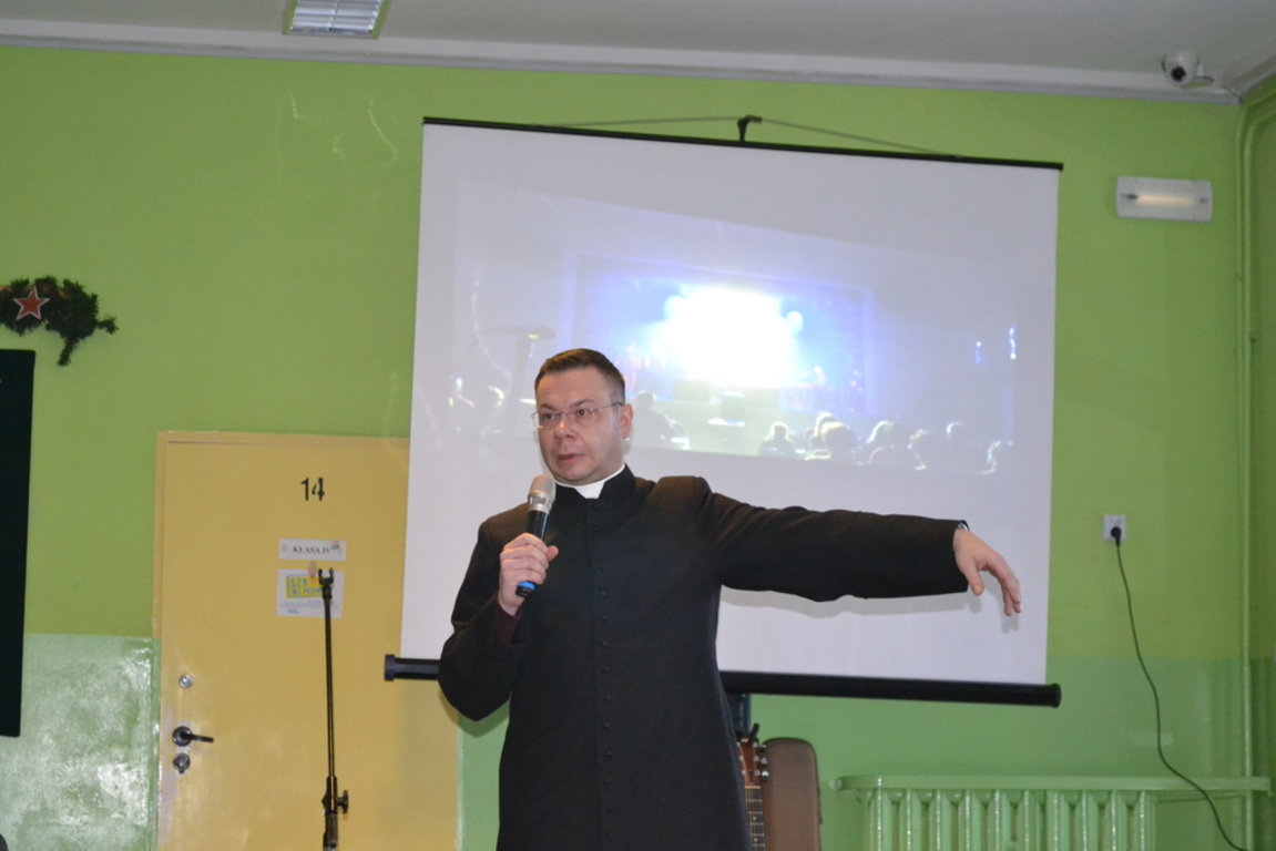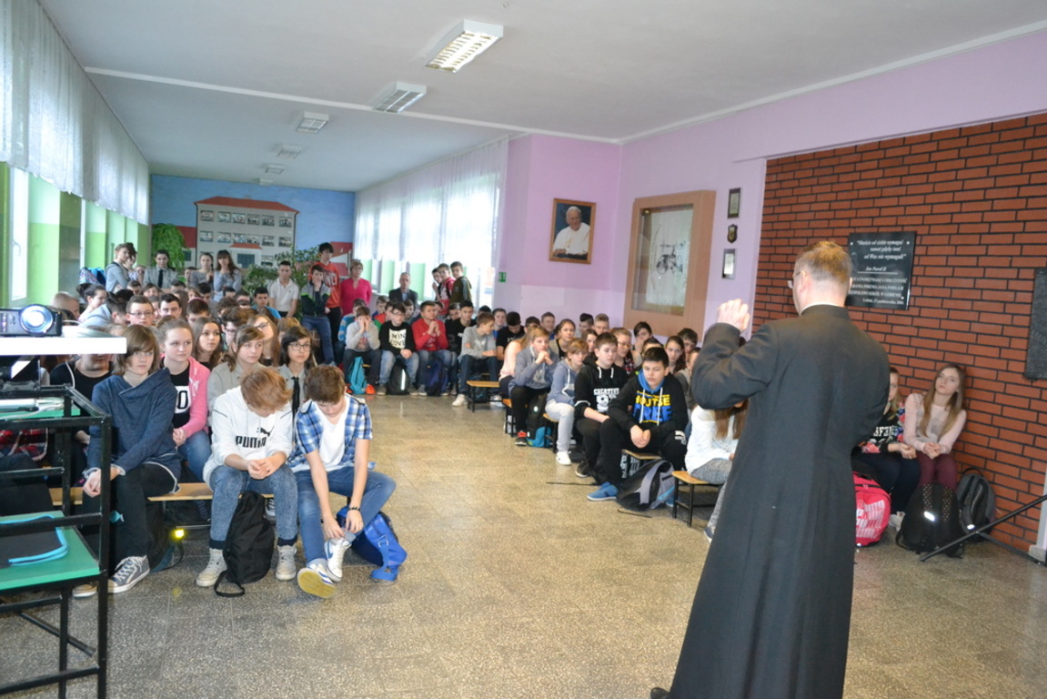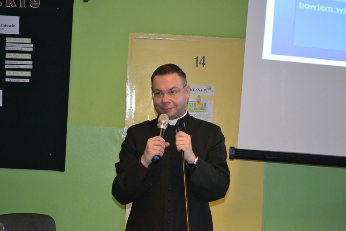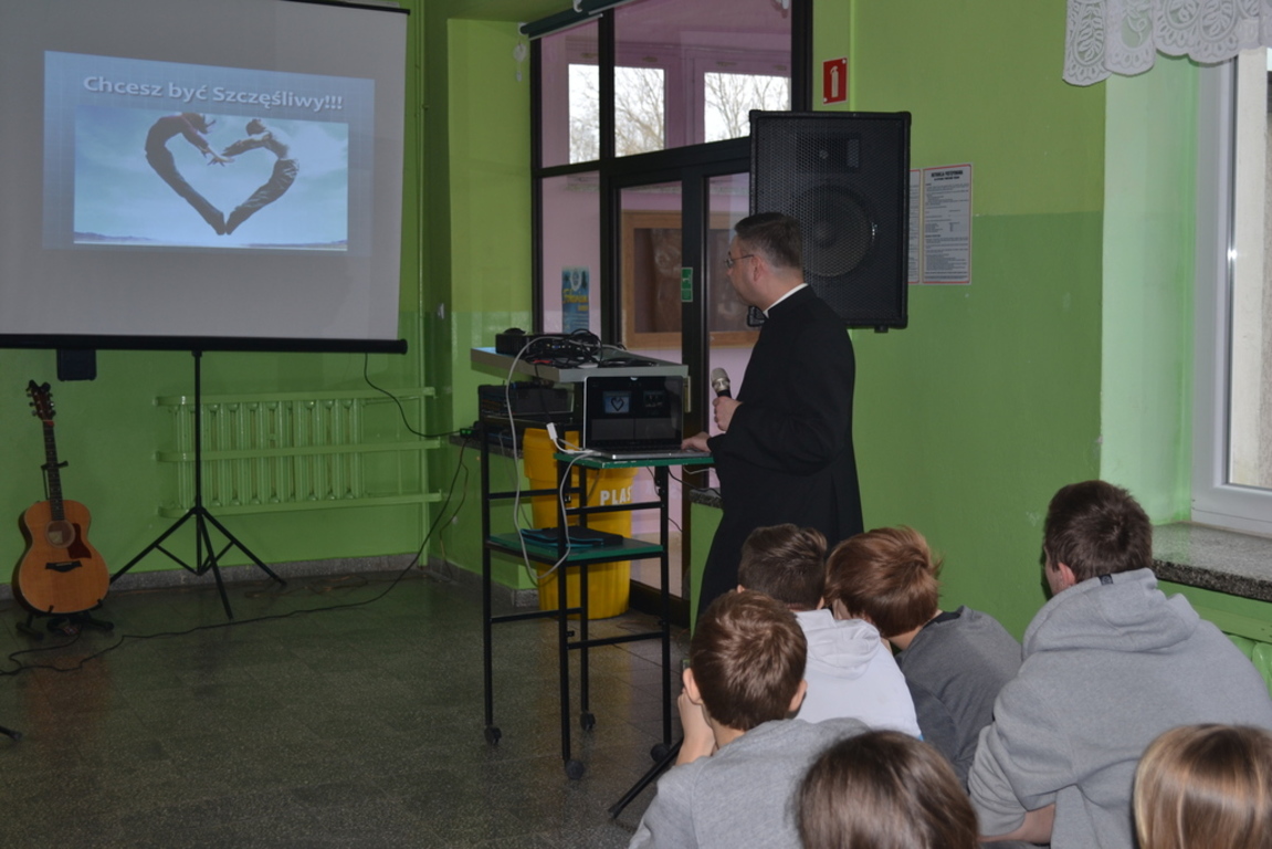 W dniach 11 – 12 lutego 2016 roku uczniowie Szkoły Podstawowej i Gimnazjum uczestniczyli w rekolekcjach wielkopostnych. Rekolekcje prowadził ks. Przemysław Krzyżanowski z Koronowa. Młodzież z zainteresowaniem słuchała rekolekcjonisty. Mądre kazania, ciekawe prezentacje i piękny śpiew z akompaniamentem gitary docenione zostały przez naszych uczniów, którzy bardzo dziękują Księdzu Przemysławowi Krzyżanowskiemu.