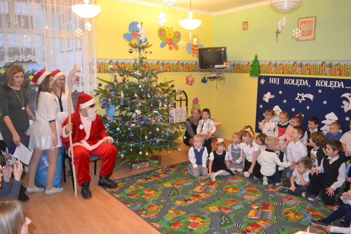 18 grudnia 2014 r. dzieci z Przedszkola przygotowały spotkanie wigilijne, na które zaprosiły rodziców. Uroczystość rozpoczęła się występem - maluszki pięknie śpiewały kolędy, zimowe piosenki i recytowały wiersze. Dzieci z zerówki przygotowały „Jasełka”, nie zabrakło też kaszubskiego akcentu. Pan Dyrektor złożył dzieciom i rodzicom bożonarodzeniowe życzenia. Na koniec przybył Mikołaj i rozdał dzieciom prezenty. Spotkanie wywołało wiele emocji. Uroczystość zakończyła się poczęstunkiem dla dzieci i rodziców. Dziękujemy dzieciom za piękne występy, a rodzicom za pomoc i współpracę