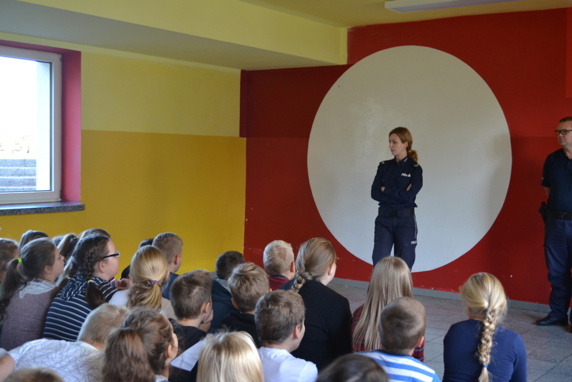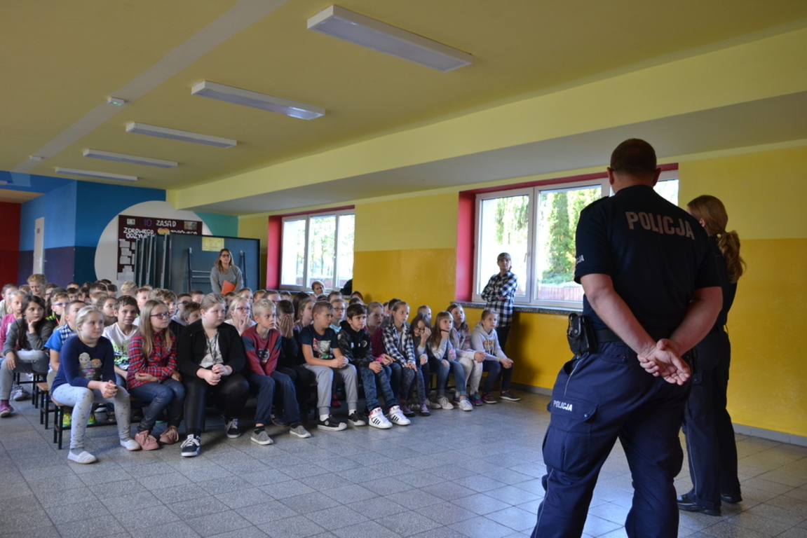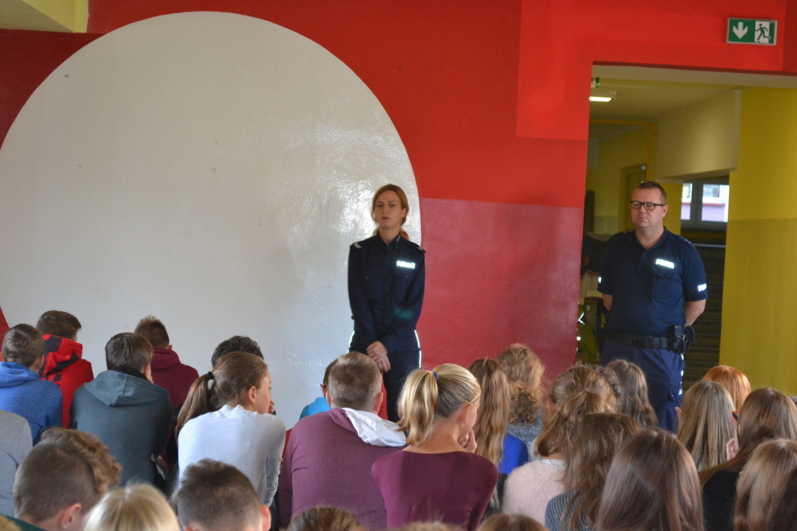 W dniu 9 października 2018r. w naszej szkole odbyło się spotkanie profilaktyczno – edukacyjne z policjantamiz Komendy Powiatowej Policji w Lęborku. W spotkaniu uczestniczyli uczniowie Szkoły Podstawowej i Gimnazjum. Dla uczniów klas IV - VI SP policjanci przeprowadzili pogadankę na temat odpowiedzialności karnej nieletnich w przypadku stosowania agresji i przemocy wobec rówieśników, a także zagrożeń korzystania z Internetu. Uczniowie klas starszych SP i Gimnazjum dowiedzieli się o konsekwencjach prawnych w przypadku stosowania przemocy wobec rówieśników, w tym szczególnie cyberprzemocy, a także o prawnych skutkach posiadania, zażywania i rozprowadzania środków psychoaktywnych. Serdecznie dziękujemy za przekazanie wyczerpujących informacji.