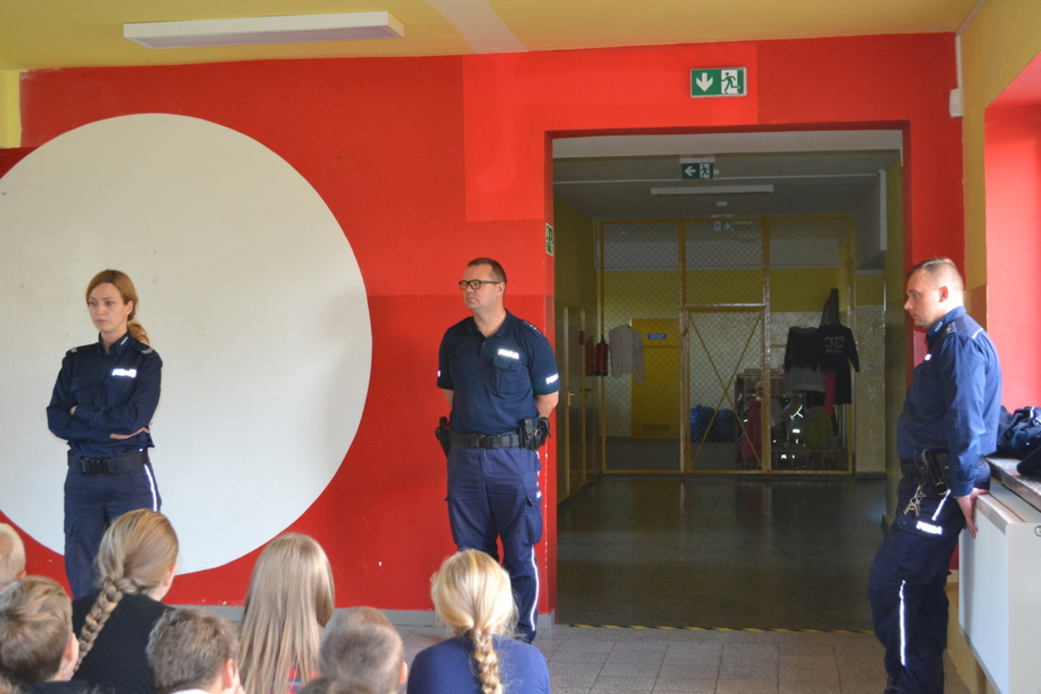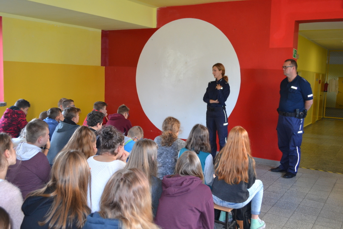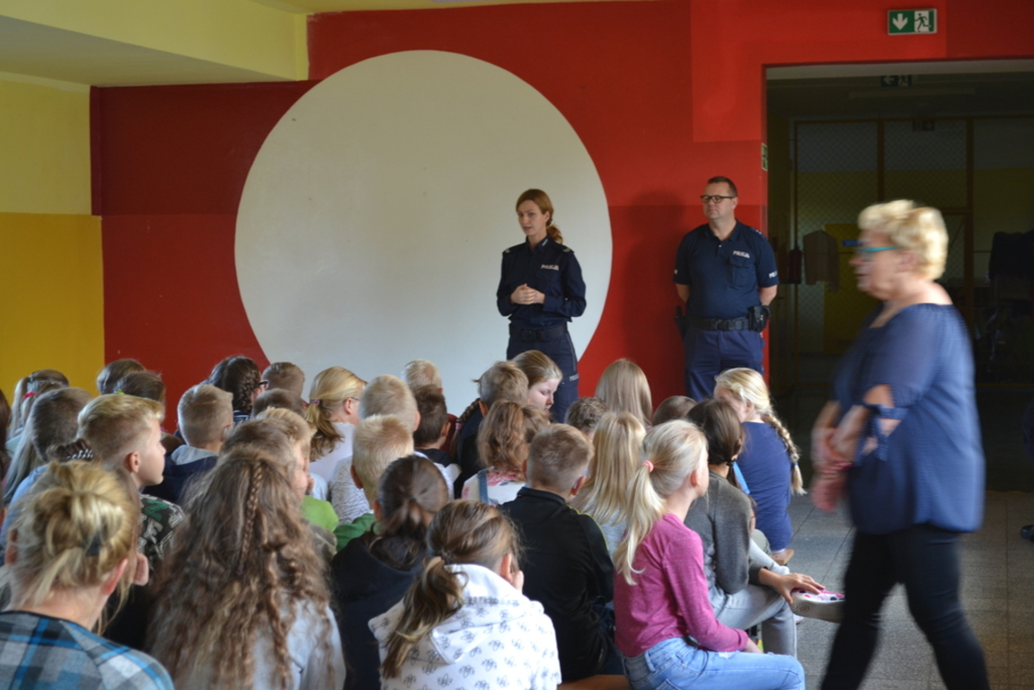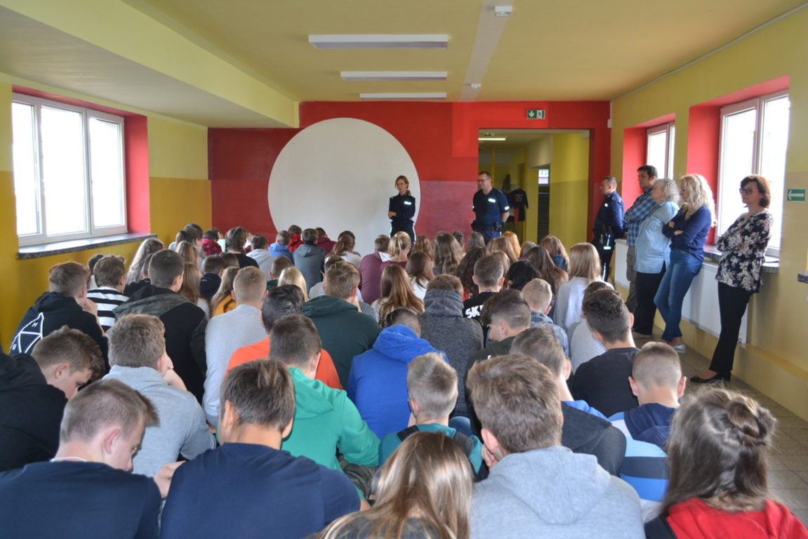 W dniu 9 października 2018r. w naszej szkole odbyło się spotkanie profilaktyczno – edukacyjne z policjantamiz Komendy Powiatowej Policji w Lęborku. W spotkaniu uczestniczyli uczniowie Szkoły Podstawowej i Gimnazjum. Dla uczniów klas IV - VI SP policjanci przeprowadzili pogadankę na temat odpowiedzialności karnej nieletnich w przypadku stosowania agresji i przemocy wobec rówieśników, a także zagrożeń korzystania z Internetu. Uczniowie klas starszych SP i Gimnazjum dowiedzieli się o konsekwencjach prawnych w przypadku stosowania przemocy wobec rówieśników, w tym szczególnie cyberprzemocy, a także o prawnych skutkach posiadania, zażywania i rozprowadzania środków psychoaktywnych. Serdecznie dziękujemy za przekazanie wyczerpujących informacji.