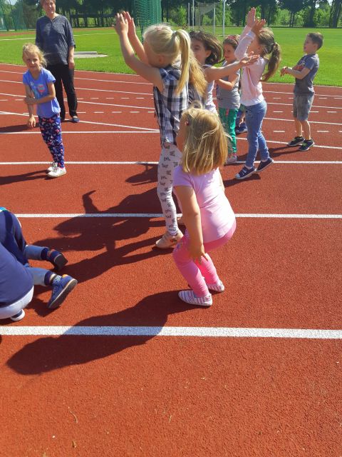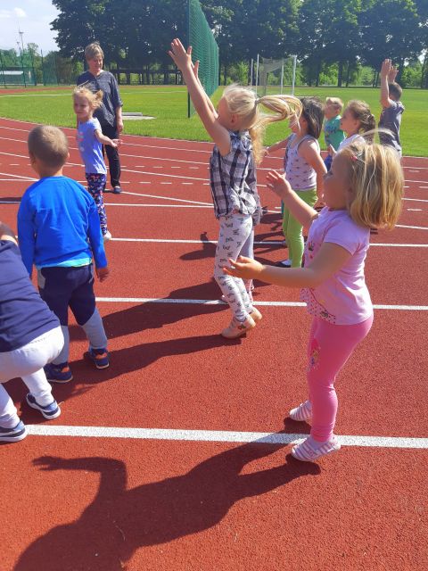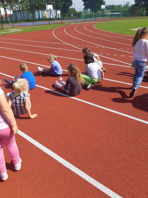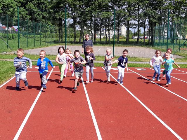 Korzystając z pięknej wiosennej pogody nasi najmłodsi zebrali się na boisku szkolnym, aby wziąć udział w IV Ogólnopolskim maratonie przedszkolaków - "Sprintem do maratonu". Przed rozpoczęciem maratonu każdy otrzymał numer startowy i odbył intensywną rozgrzewkę, następnie wszyscy ustawili się na linii startu. Po dokładnym przygotowaniu w końcu padło długo wyczekiwane hasło: GOTOWI DO BIEGU START!!! Wszyscy dotarli do mety. W przedszkolu, każdy maratończyk otrzymał medal i dyplom, a zwycięzca otrzymał puchar. Dziś każdy przedszkolak wie, że: "Biegając, ruszając się i uprawiając sport robi się prezent własnemu zdrowiu". To był cudowny sportowy dzień!