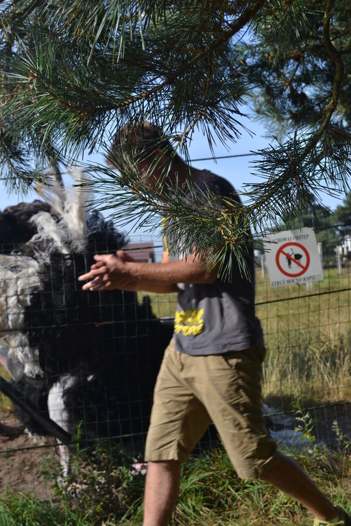 Przywitało tam nas stado strusi afrykańskich w różnym wieku, króliki, lamy, emu, osły, kozy oraz konik Kacperek.