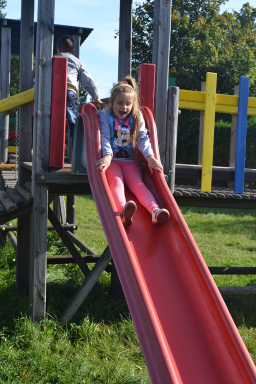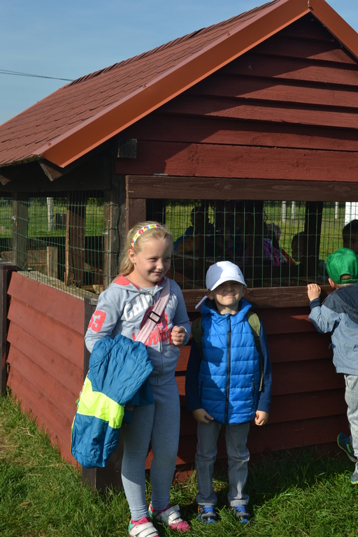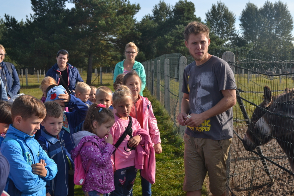 Dzieci nie tylko zwiedzały farmę, ale mogły także samodzielnie nakarmić zwierzaki, a niektóre z nich nawet pogłaskać. Warto wspomnieć o osiołku Kubusiu, który głośno i radośnie przywitał dzieci swoim oślim głosem.